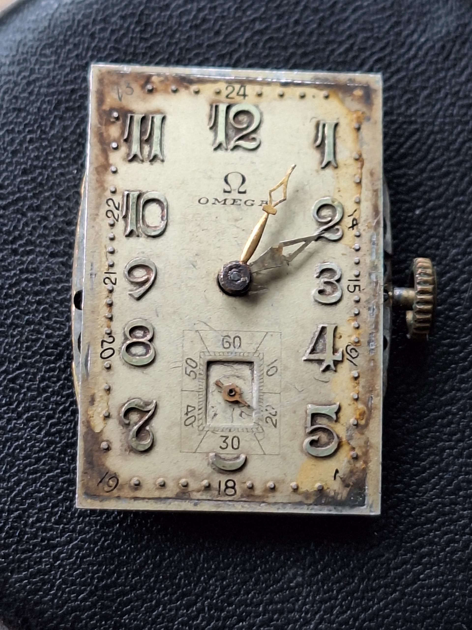 Inmiddels heb ik het horloge binnen en foto’s gemaakt, (ik weet dat er ws radium op de wijzerplaat zit, dus heb het heel voorzichtig even opengemaakt). Volgens mij zit er een 20F uurwerk in (beperkte kennis) en is het balanswiel gebroken. Valt dit te repareren of moet ik op zoek naar een vervanger?