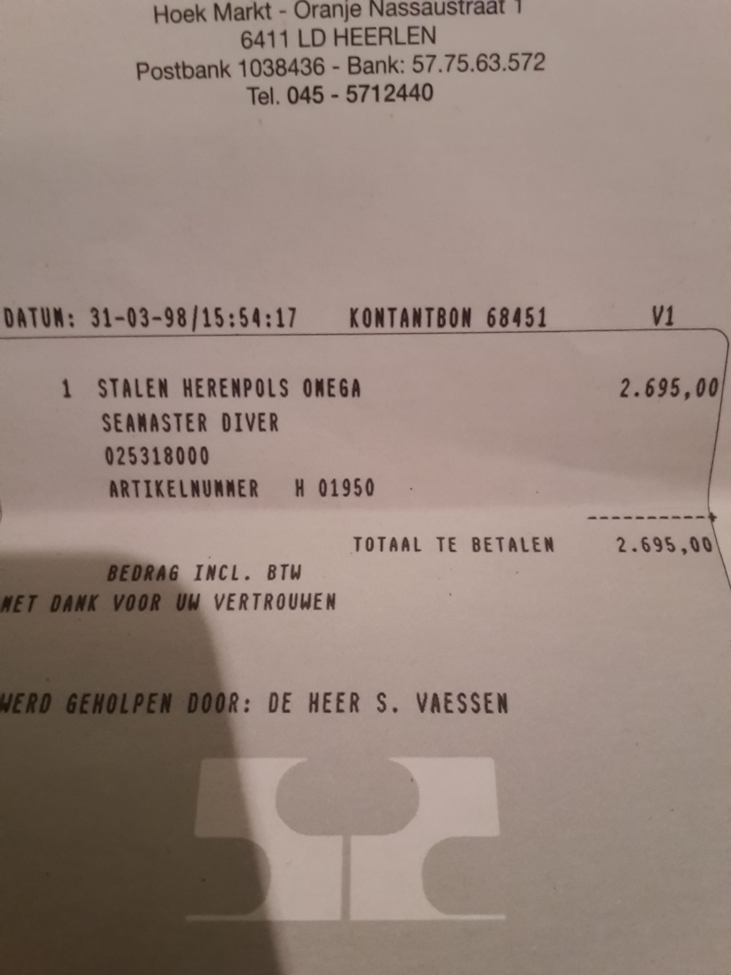 Zo te zien is dat de 2531.80 automaat. Op eBay gaan die zo voor 1200-1400, dacht dat Van Wonderen er eentje voor 1600 had staan. 1250 zou een mooie prijs zijn maar met wat geluk kan het voor minder