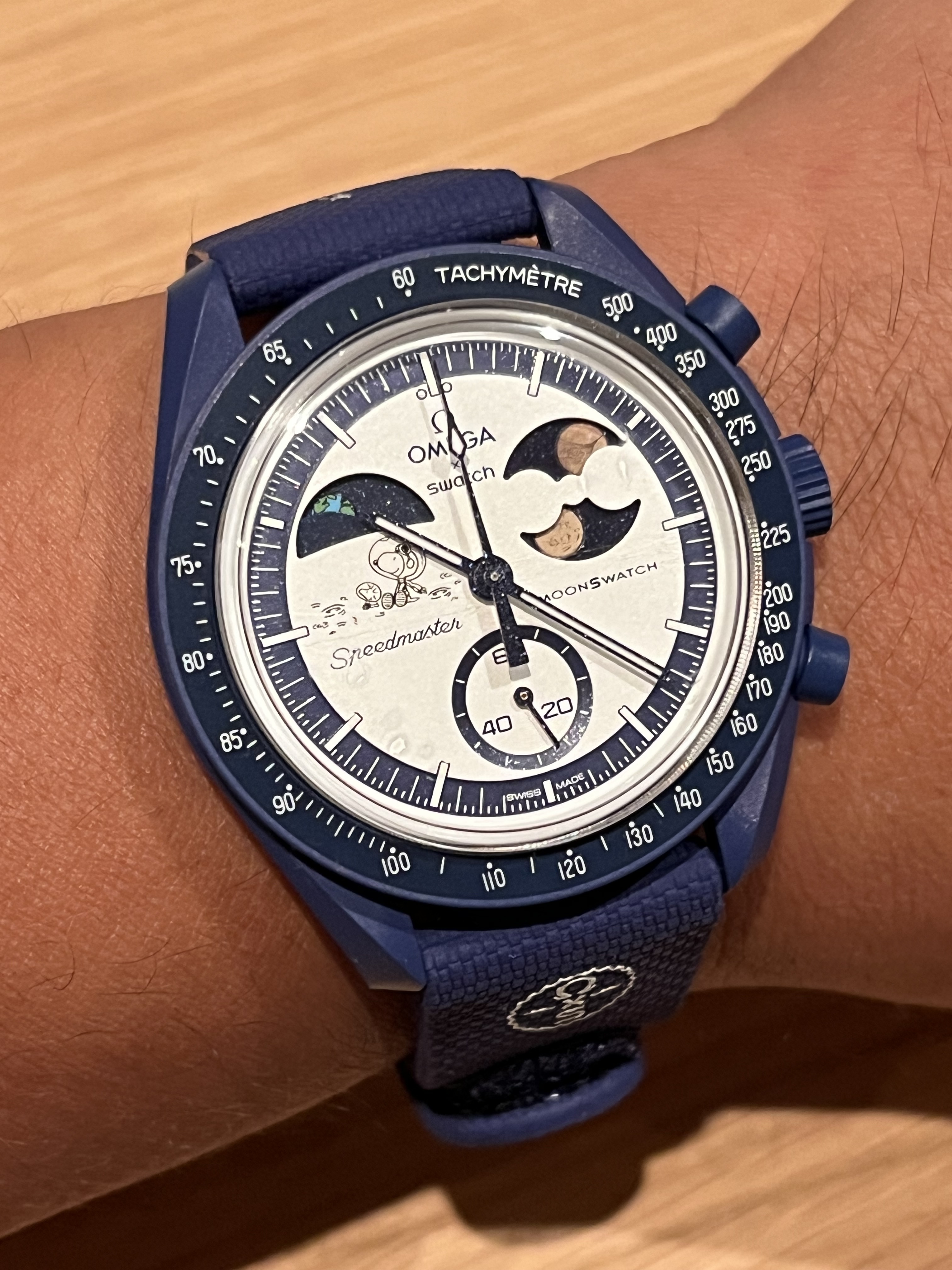 Met deze versie zijn wel alle unieke facetten bij elkaar gekomen, moonphase, de blauwe kleur, Earth fase, moonshine gold en natuurlijk snoopy heel duidelijk in beeld. Alles in één horloge, ik hoop dat Swatch de moonswatch serie hiermee af heeft gesloten zeg ik als liefhebber.
