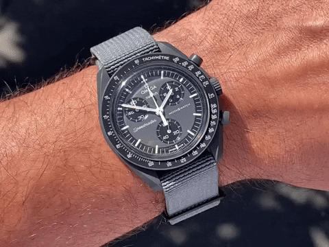 Waardevast? Op dit moment nog wel maar het is toch wel een hype die op een gegeven moment over gaat en dan is het horloge niet veel meer waard. Ik heb ook de Moon voor 250 euro gekocht en dat is ie echt niet waard objectief gezien. Soms denk ik: weg ermee! Maar het is inderdaad een stukje verhaal wat erbij hoort. Ik draag 'm soms op single pass NATO en in de zomer is het dan een licht en comfortabel horloge. Het originele bandje vind ik niks…