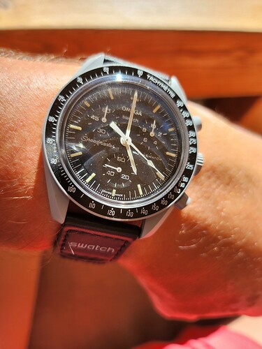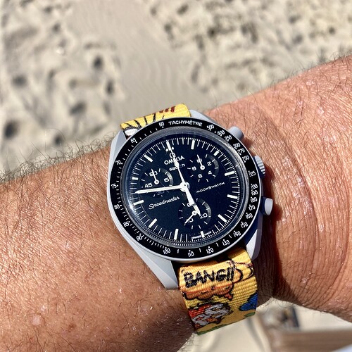Heb er een andere strap opgezet… Nato of parachute elastiek. Beide super.