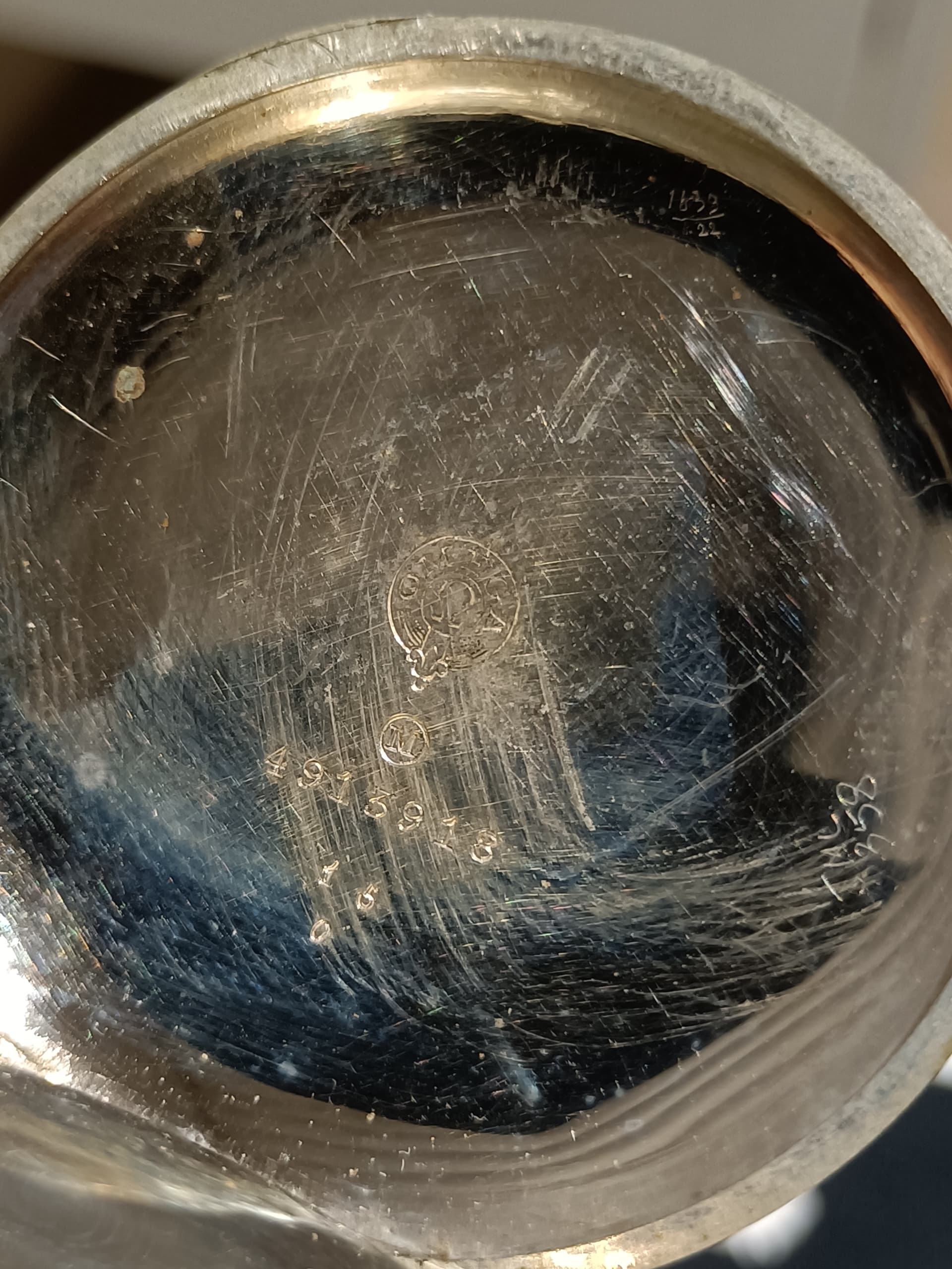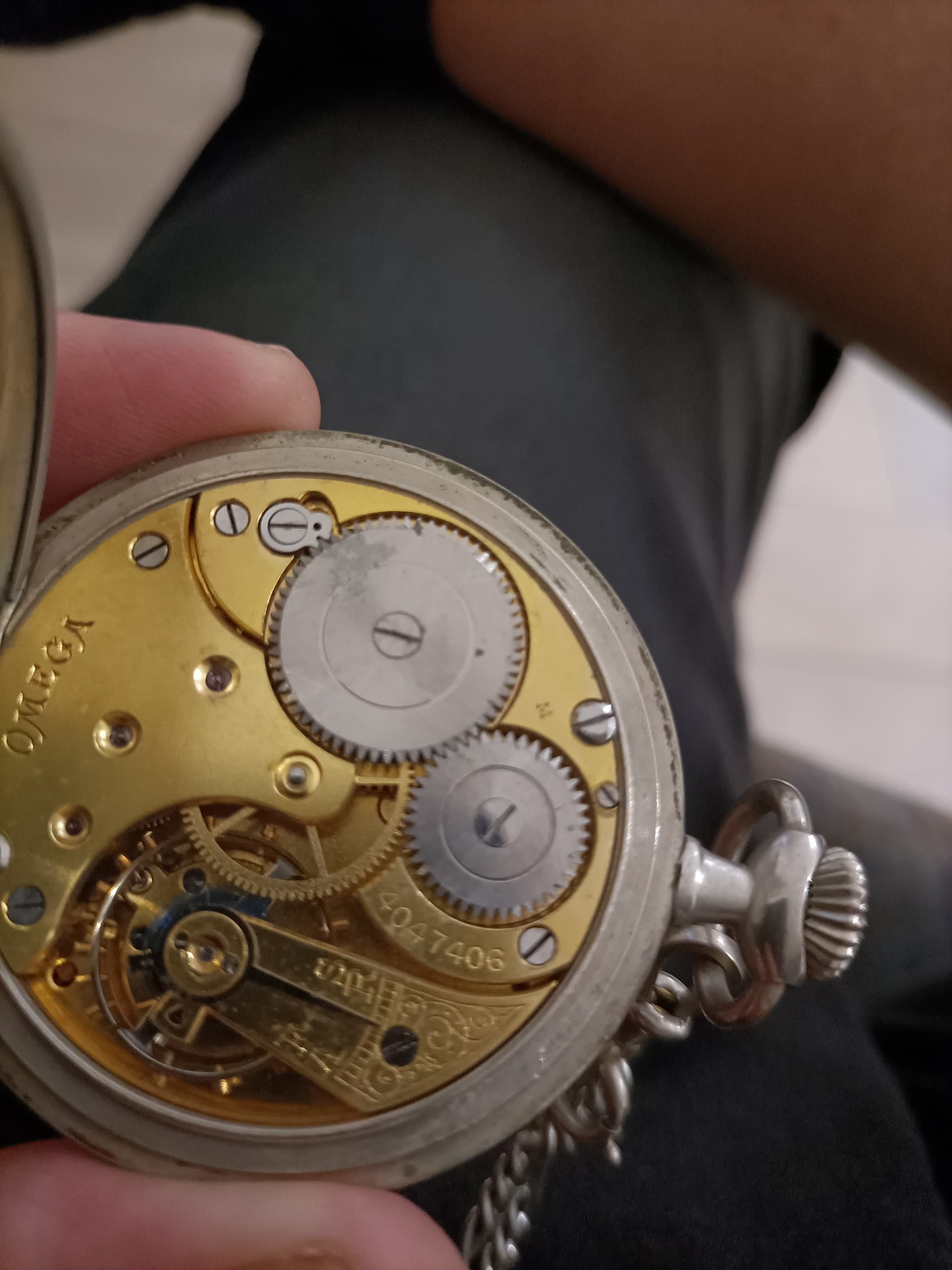Hallo, een Omega zakhorloge gevonden dat nog perfect werkt. Wijzerplaat jammergenoeg beschadigd. Op de binnenkant staat een serienummer alsook een letter M.