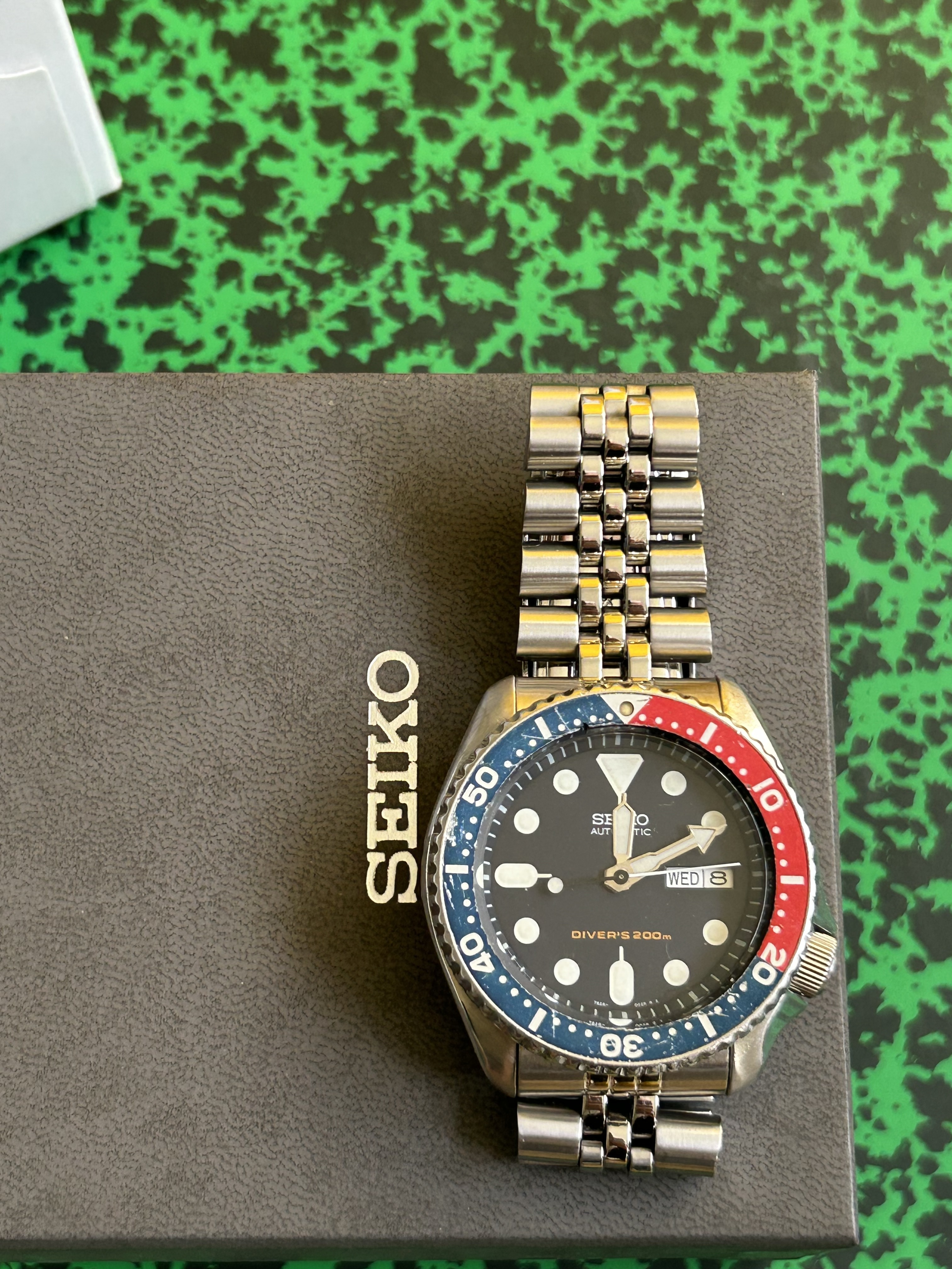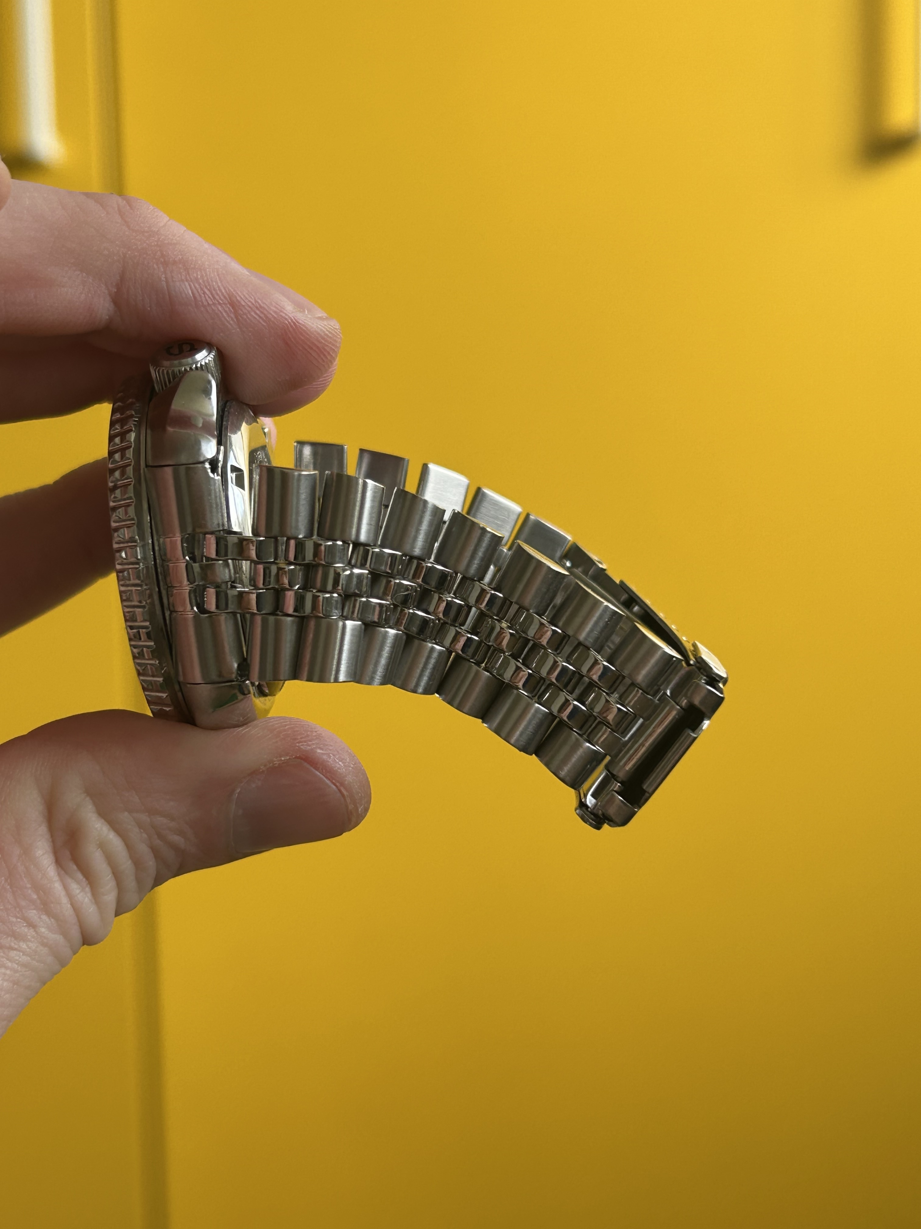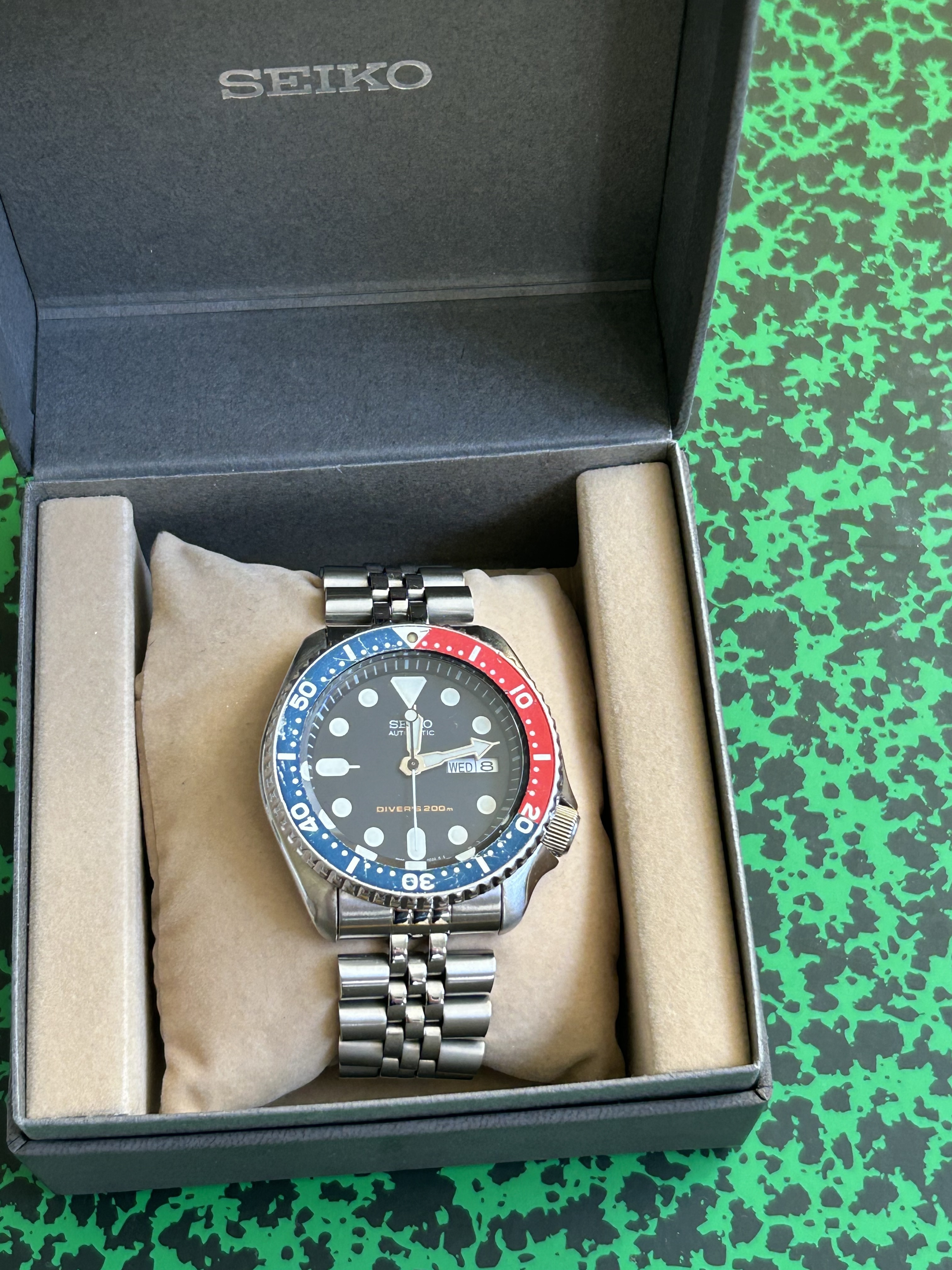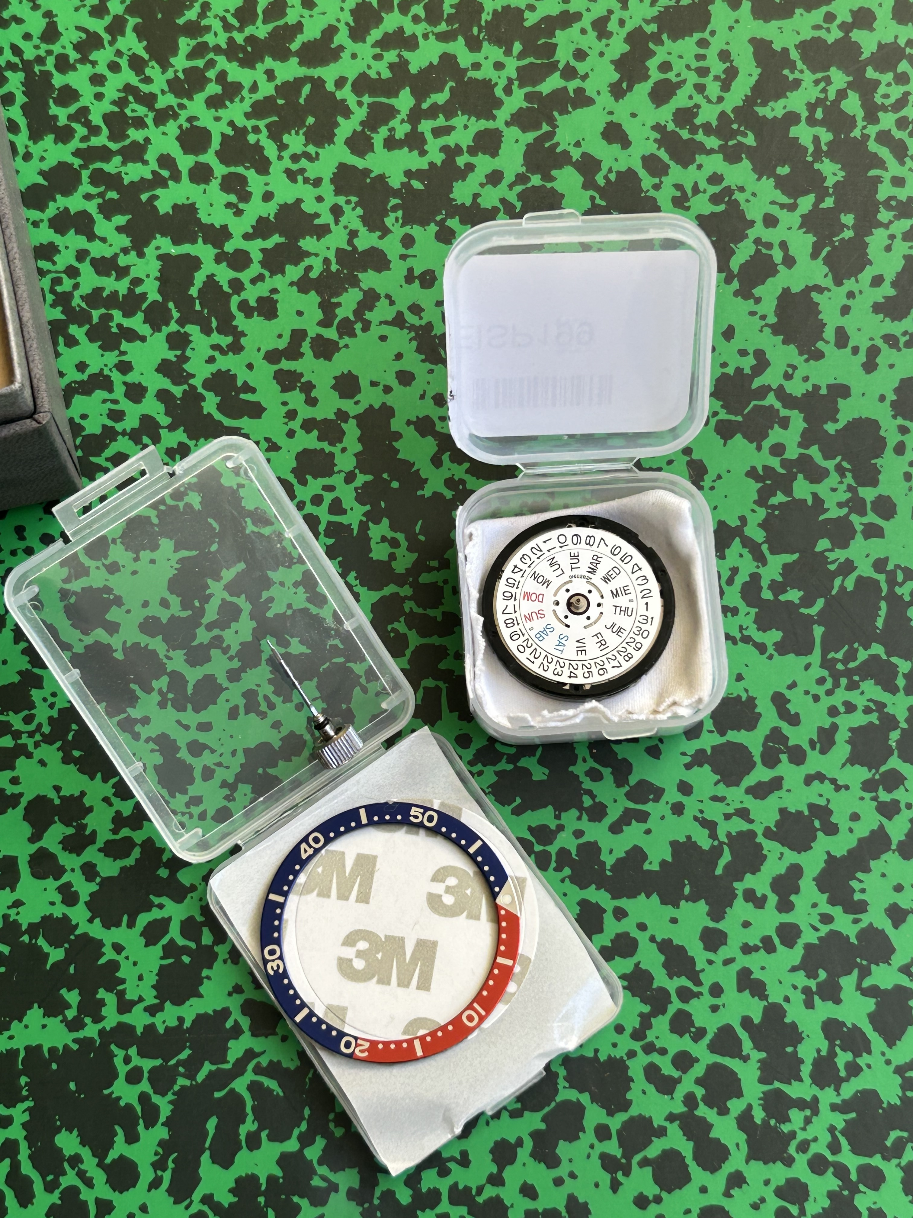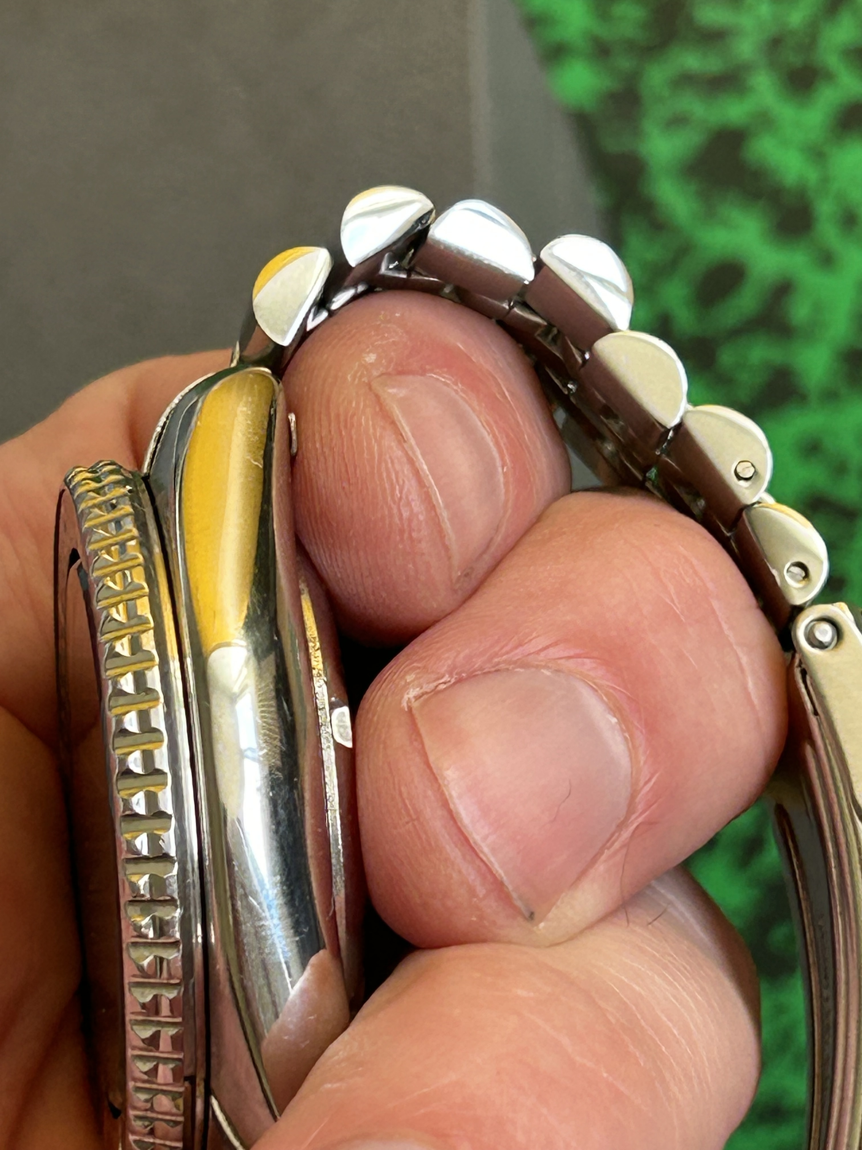 Originele doos en/of eventuele accessoires: doos, omdoos, schakels, originele uurwerk, originele kroon, vervangende bezel insert