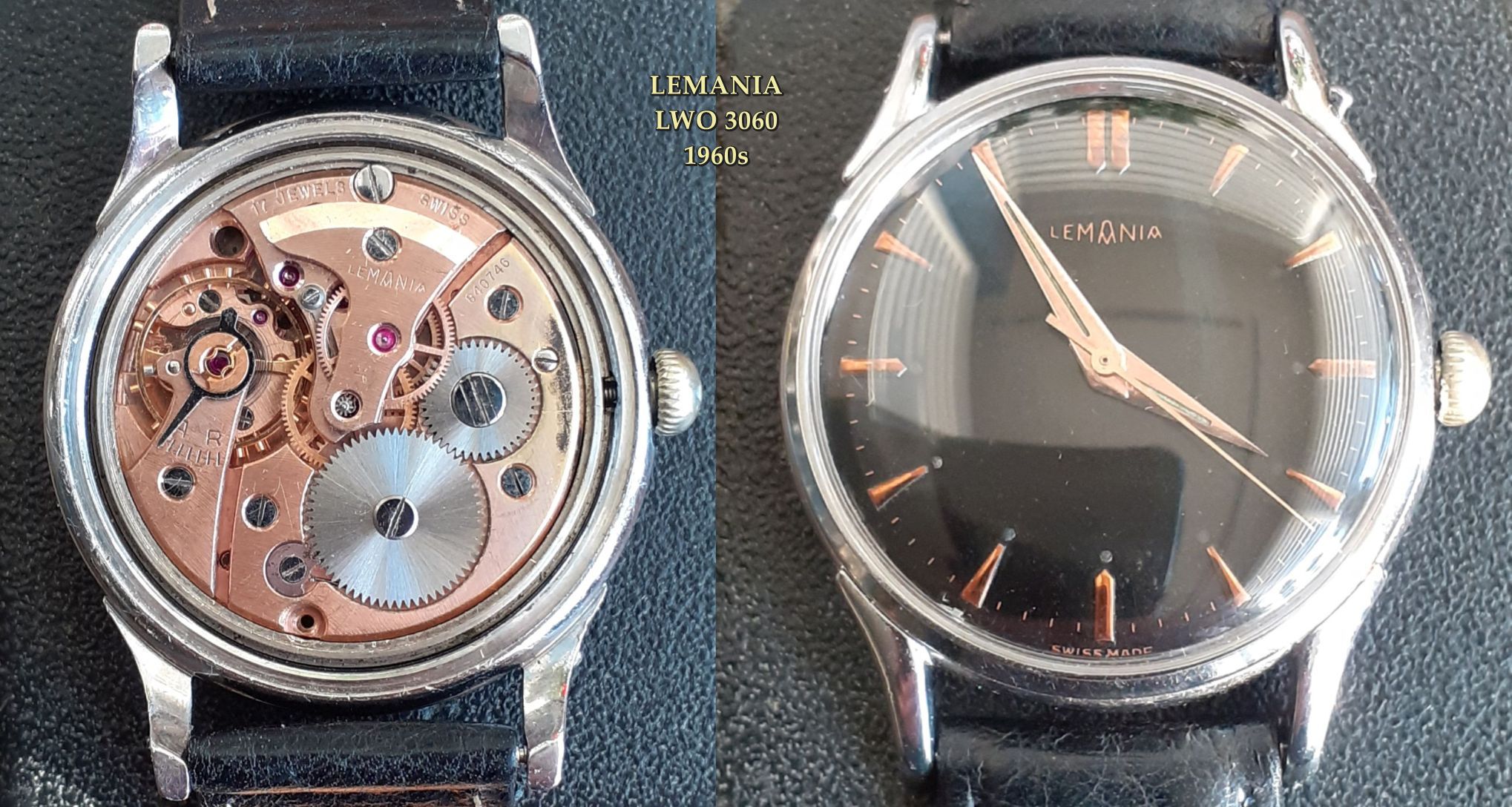 Lemania LWO 3060, handopwind, 17 jewels, geproduceerd in de jaren 1960.