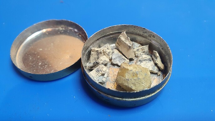 Kronen in de uitverkoop! 50+ buisjes, plastic blisters, zakjes en potjes met alle mogelijke maten, vormen en uitvoeringen (verguld, rood goud, chromé, …). En als je dan kijkt naar wat op het eerste zicht wat bijeengekoekt stof is in de hoek van de kartonnen doos…