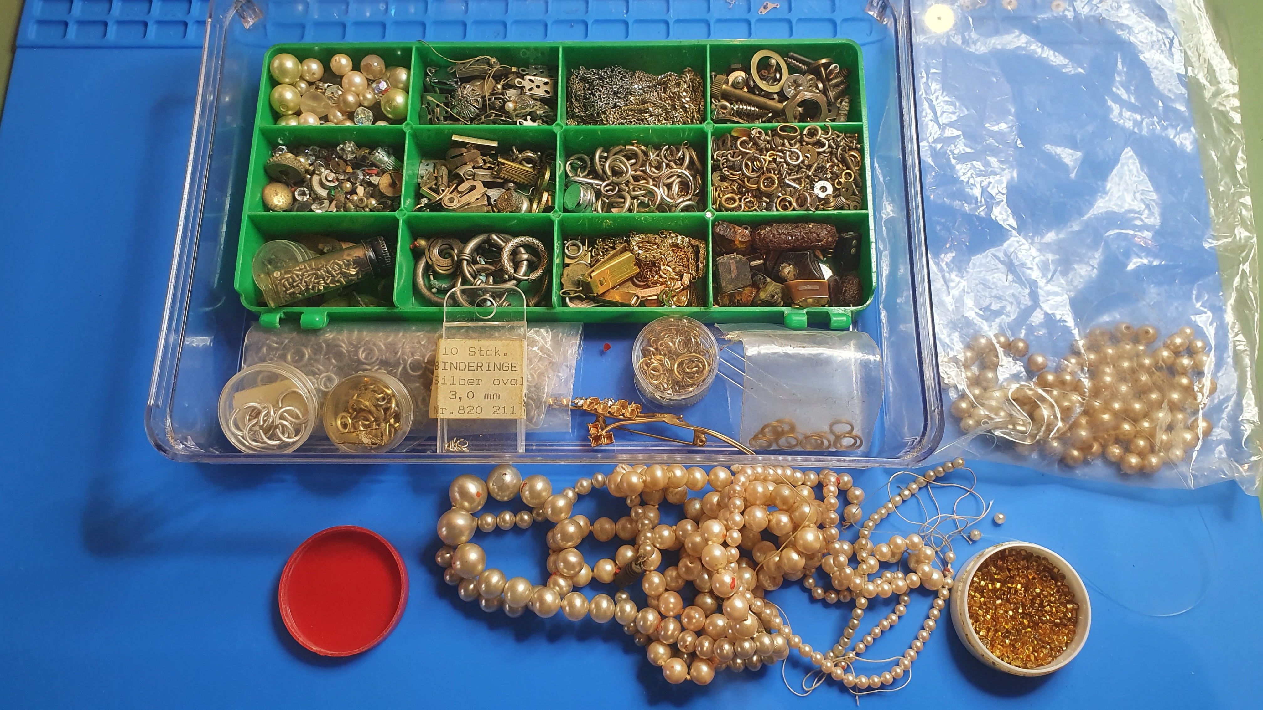 Wijlen de eigenaar was ook juwelier, en deze doos vol (veronderstel ik heel erg nep) parels, kettingen en “edel” stenen is nutteloze ballast. De kans dat daar plots een echte 10 karaats diamant in ligt is vrij beperkt zullen we maar zeggen.
