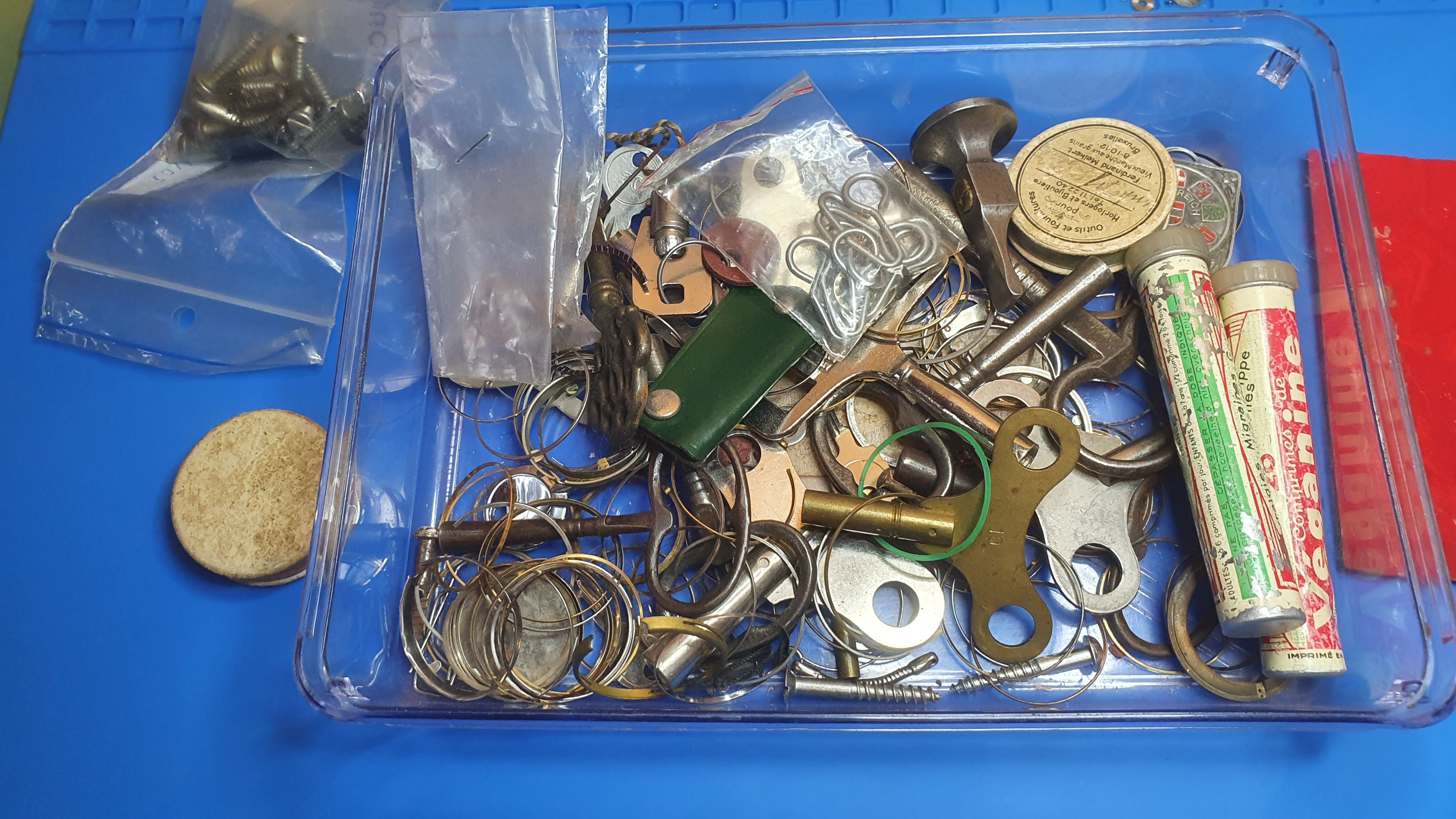 Een pak ringen, sleuteltjes in alle afmetingen, een verloren gelopen hamerkop… en hij was wel een optimist, denkende van in dat potje veertjes ooit nog iets nuttigs terug te kunnen vinden!