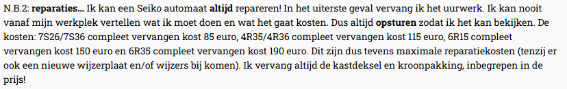 Je kan anders altijd onze vriend Rob van Monsterwatches eens proberen te berichten. Zie iets op zijn site staan over vervangen van een 6R35 voor 190 euro staan. Weet niet of dit inclusief het uurwerk is.