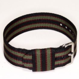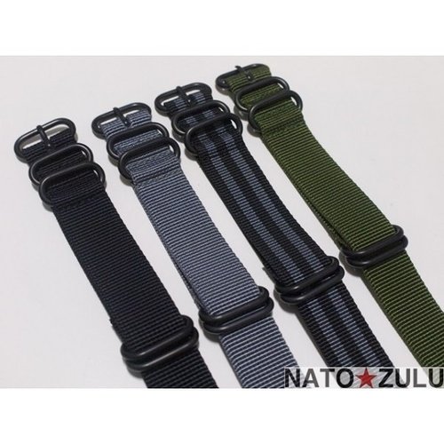 NATO (G10) en Zulu hebben een dubbele band onder de kast, RAF en perlon een enkele, daarnaast is perlon van een ander materiaal en heeft geen gaten, maar een scherpe doorn en wafelstructuur