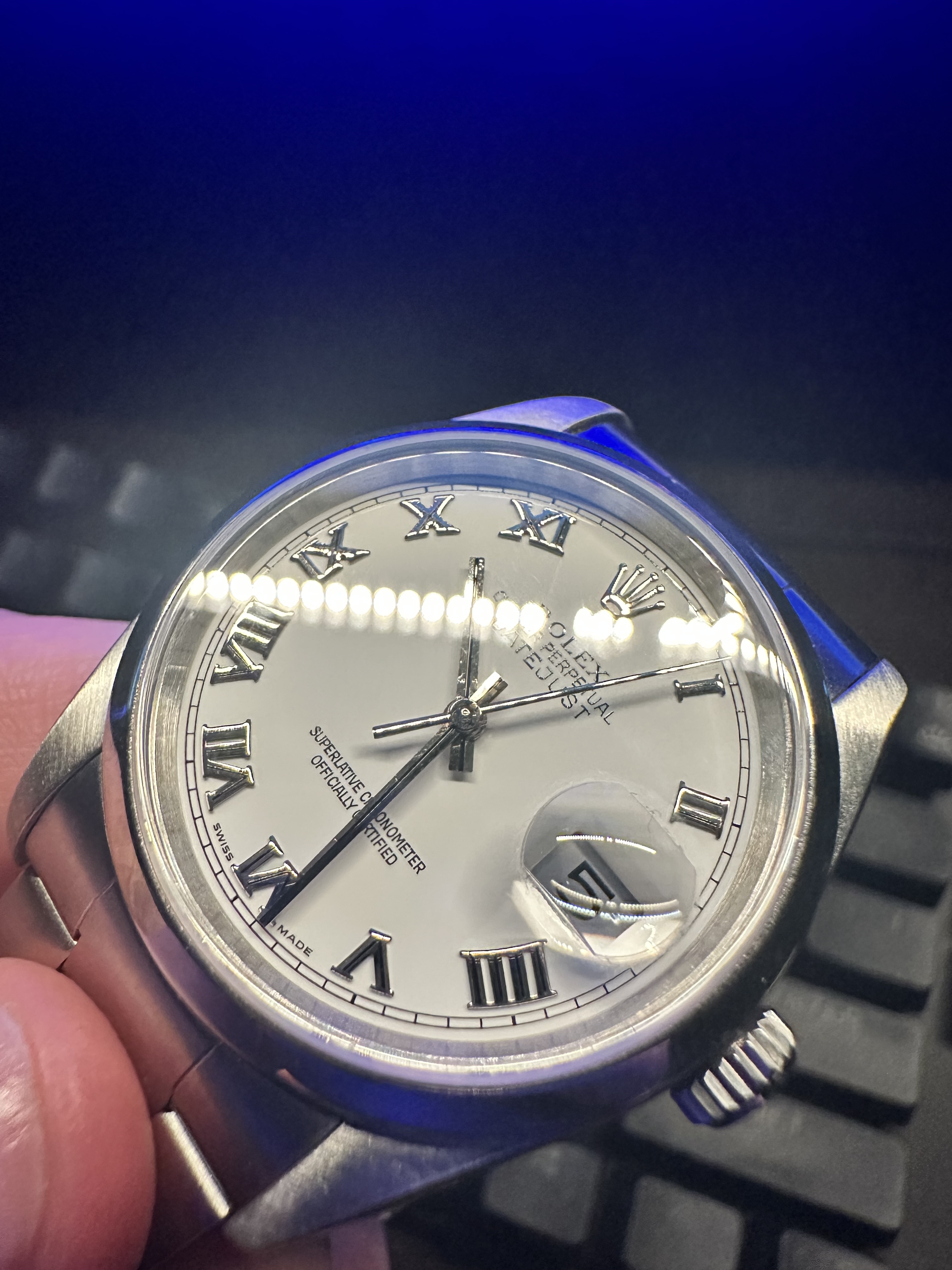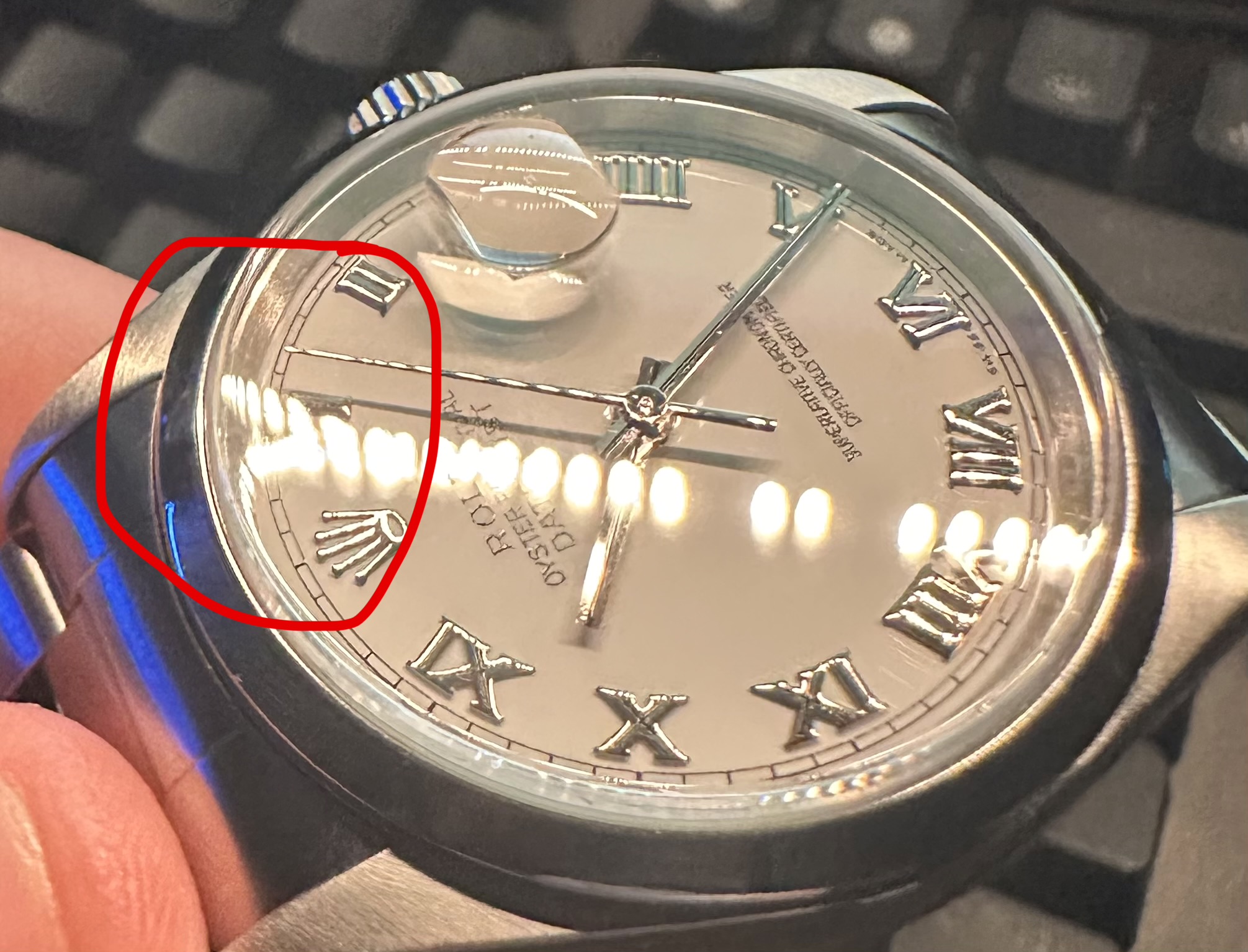 Ik bezit inmiddels ongeveer vijf jaar een Rolex 16200. Onlangs merkte ik dat het saffierglas, wanneer je het vanuit een bepaalde hoek bekijkt, het licht lijkt te vervormen.