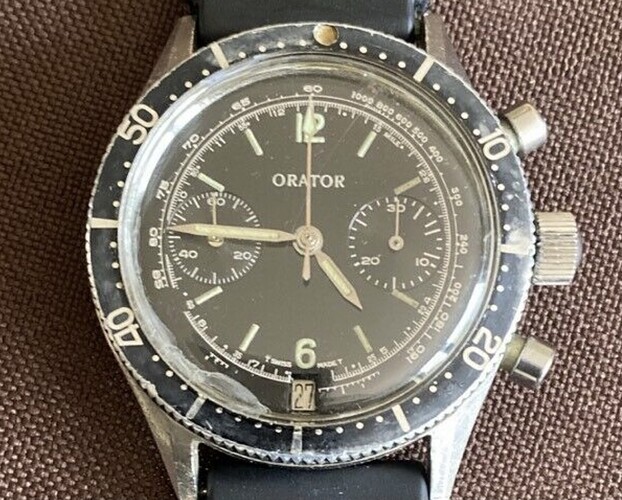 Afgelopen week twee horloges mogen ophalen bij @Freddy, waar hij waanzinnig werk aan geleverd heeft. Het betreft mijn Leonidas met Valjoux 77 en een Orator duiker met Landeron 187… die beiden wel heel erg aan een grondige onderhoudsbeurt toe waren.
