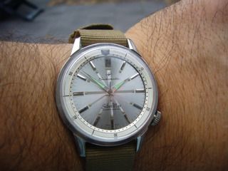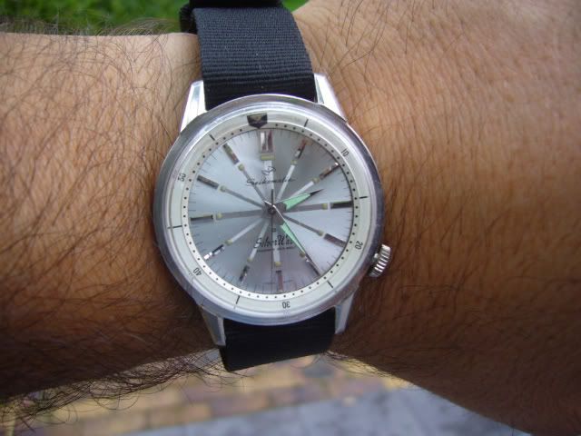 Zo, mijn Seikomatic SilverWave is binnen! De opa aller Seiko duikers. Dit exemplaar is van februari 61. Latere exemplaren hadden een onbewerkte wijzerplaat en de toevoeging '30’of '50’als het gaat om waterbestendigheid.