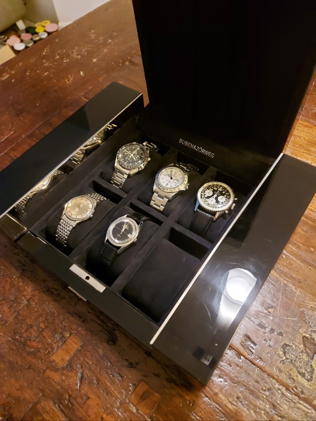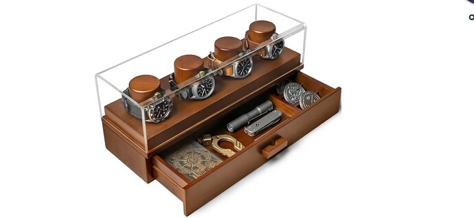 Ik had ongeveer hetzelfde gevoel, slechts 3 horloges en een zoektocht naar een doos voor maximum 6 horloges. Na wat rondneuzen heb ik gisteren de knoop doorgehakt en volgende besteld. Er waren goedkopere opties (vooral de verzendkosten en tax vind ik zuur) maar ik weet dat ik aan deze zou blijven denken als ik een andere had besteld.