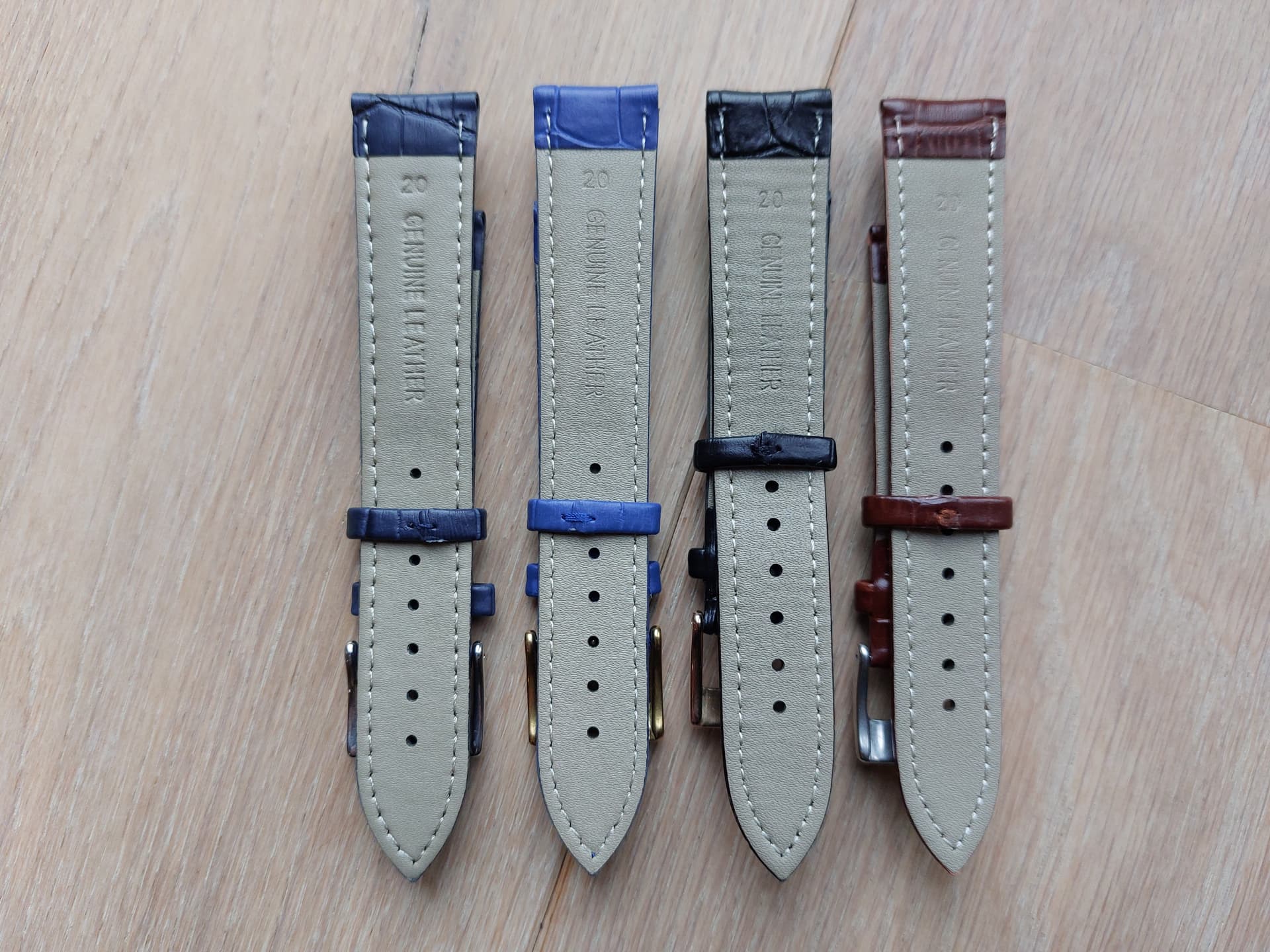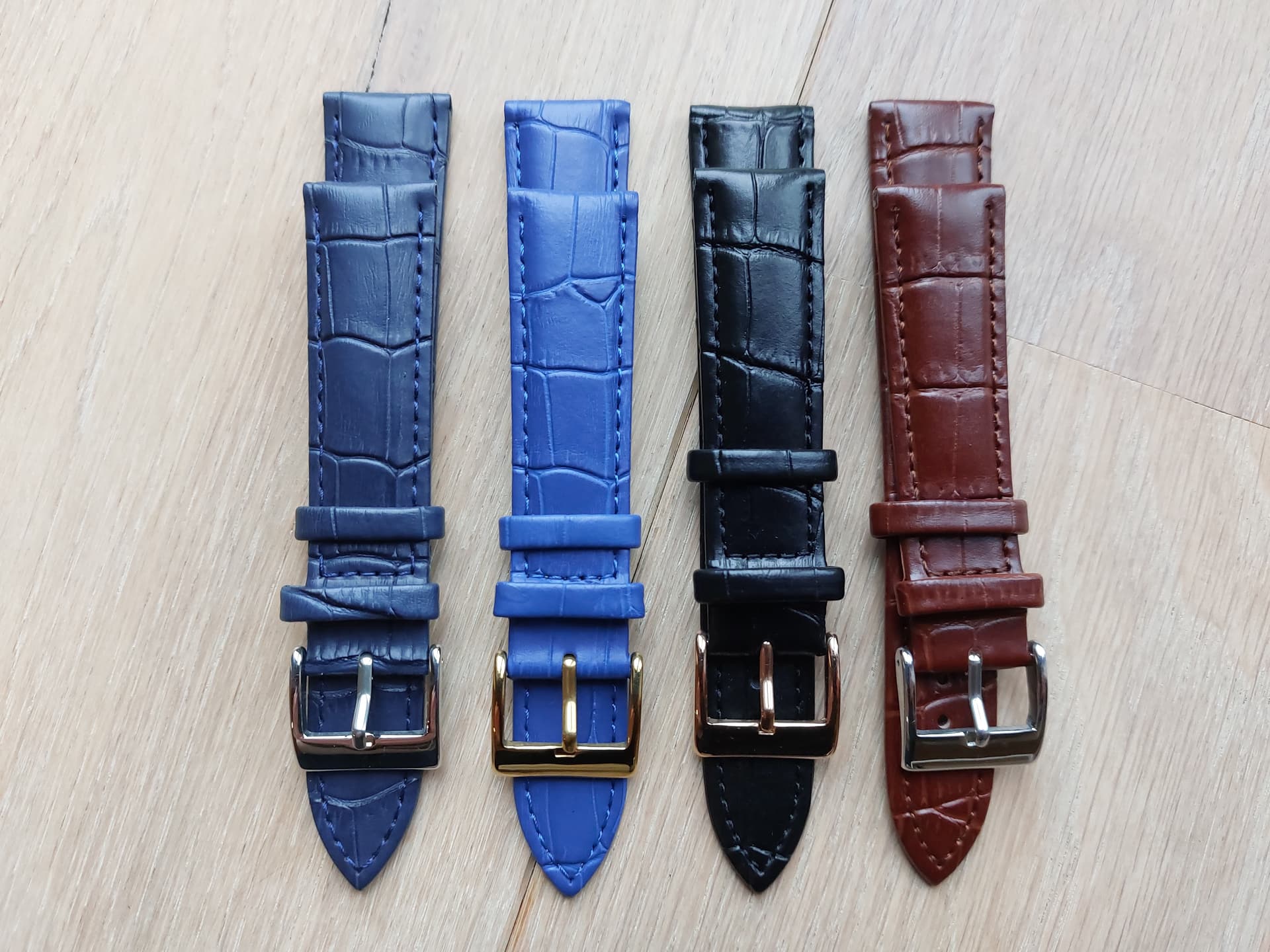 Croco print straps: 2x gesp zilver, 1x gesp rosé goud, 1x gesp geel goud, uitwisselbaar.