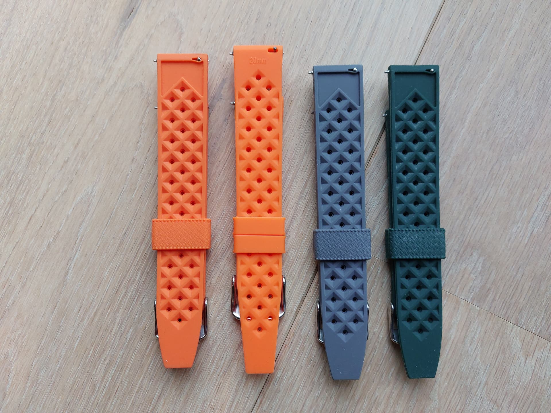 En als laatste wat tropic bandjes (2x oranje, grijs en donker groen). Samen verstuurd met T&T voor 40/45 EUR (BE/NL).