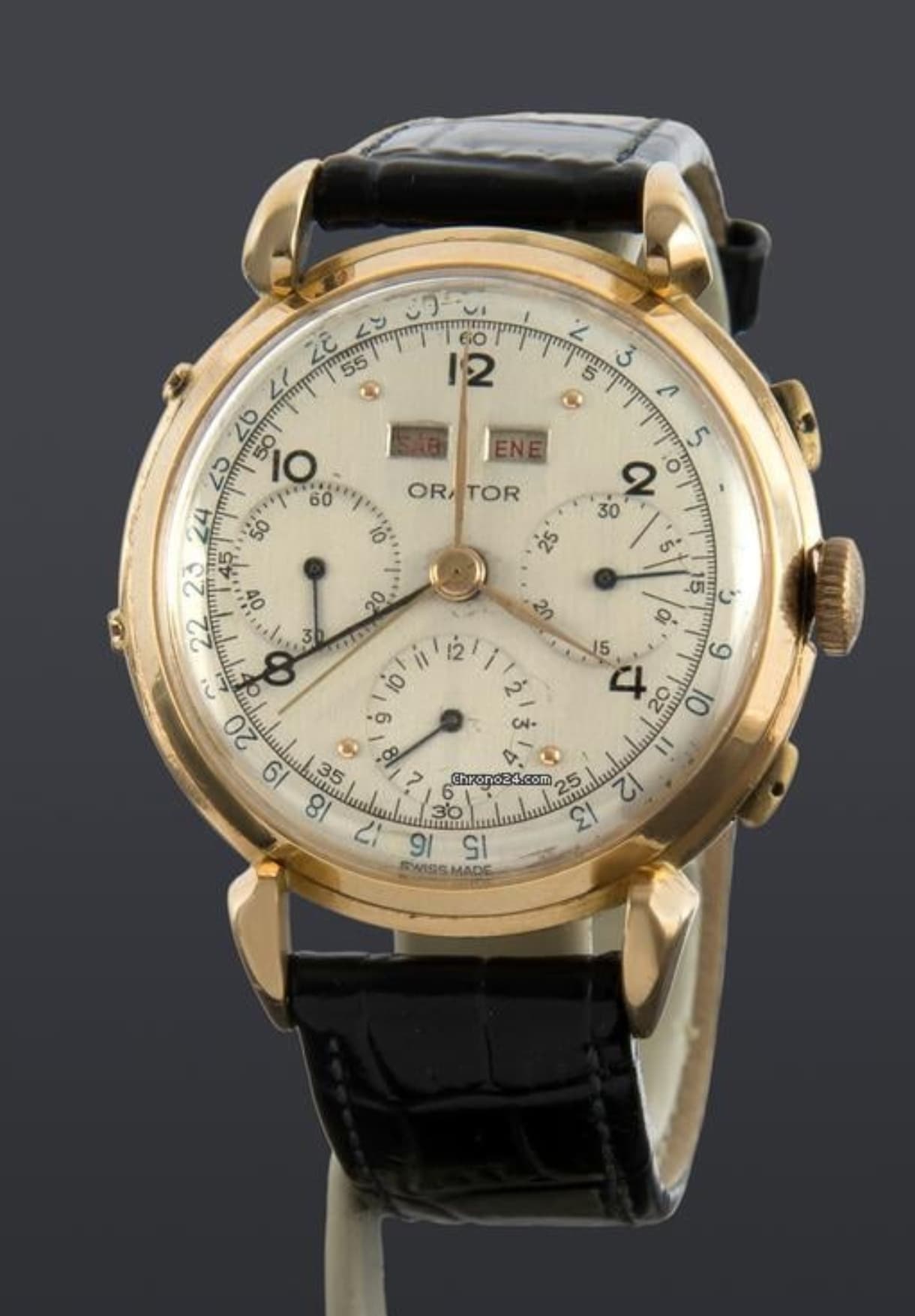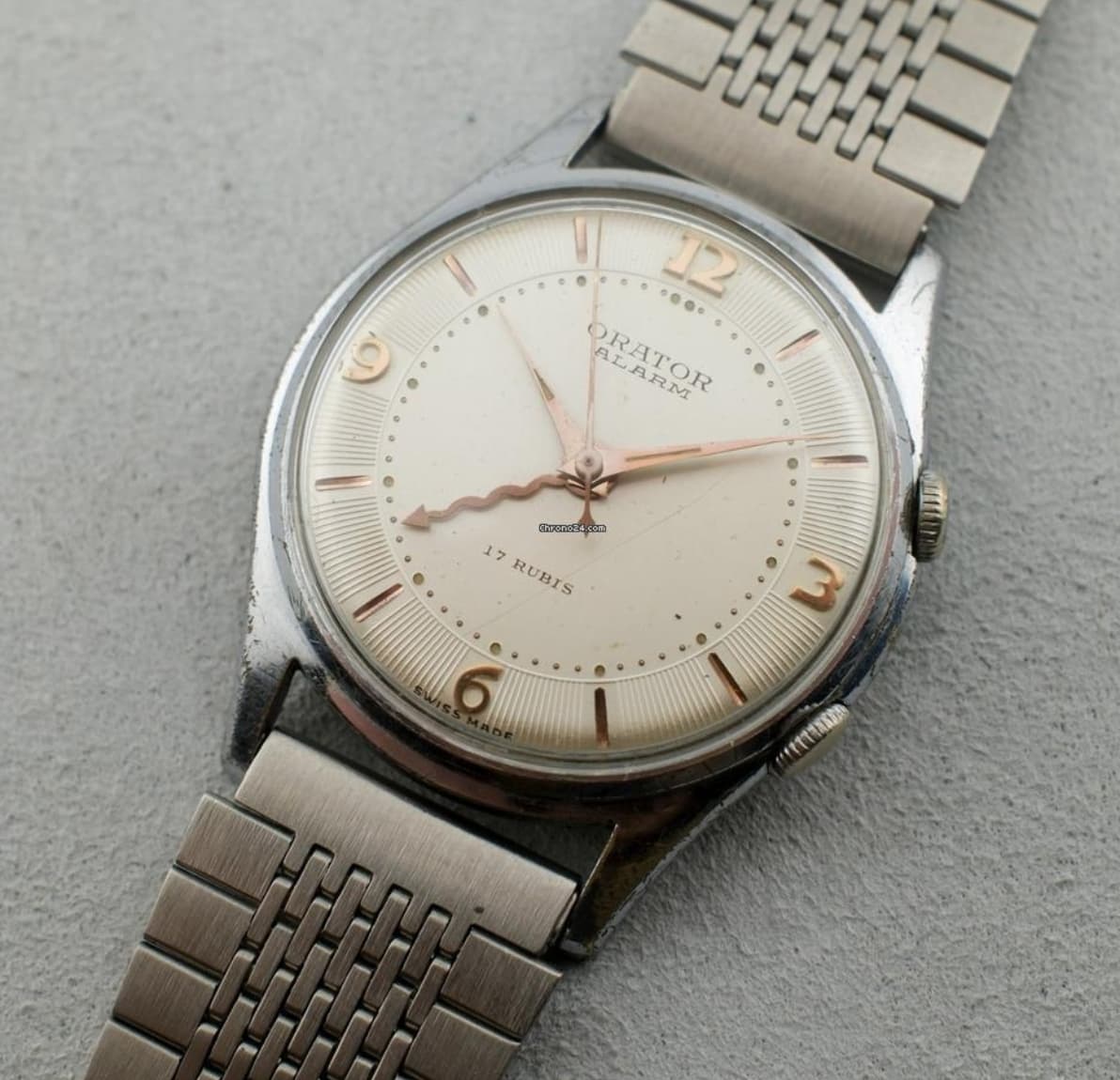 Orator wordt nog weleens genoemd in het rijtje Leonidas, Pierce, UG en Omega. Ze maakten ook chronografen, incl. triple date mét maanfase. En een paar Alarm horloges voor Bas. :sweat_smile: