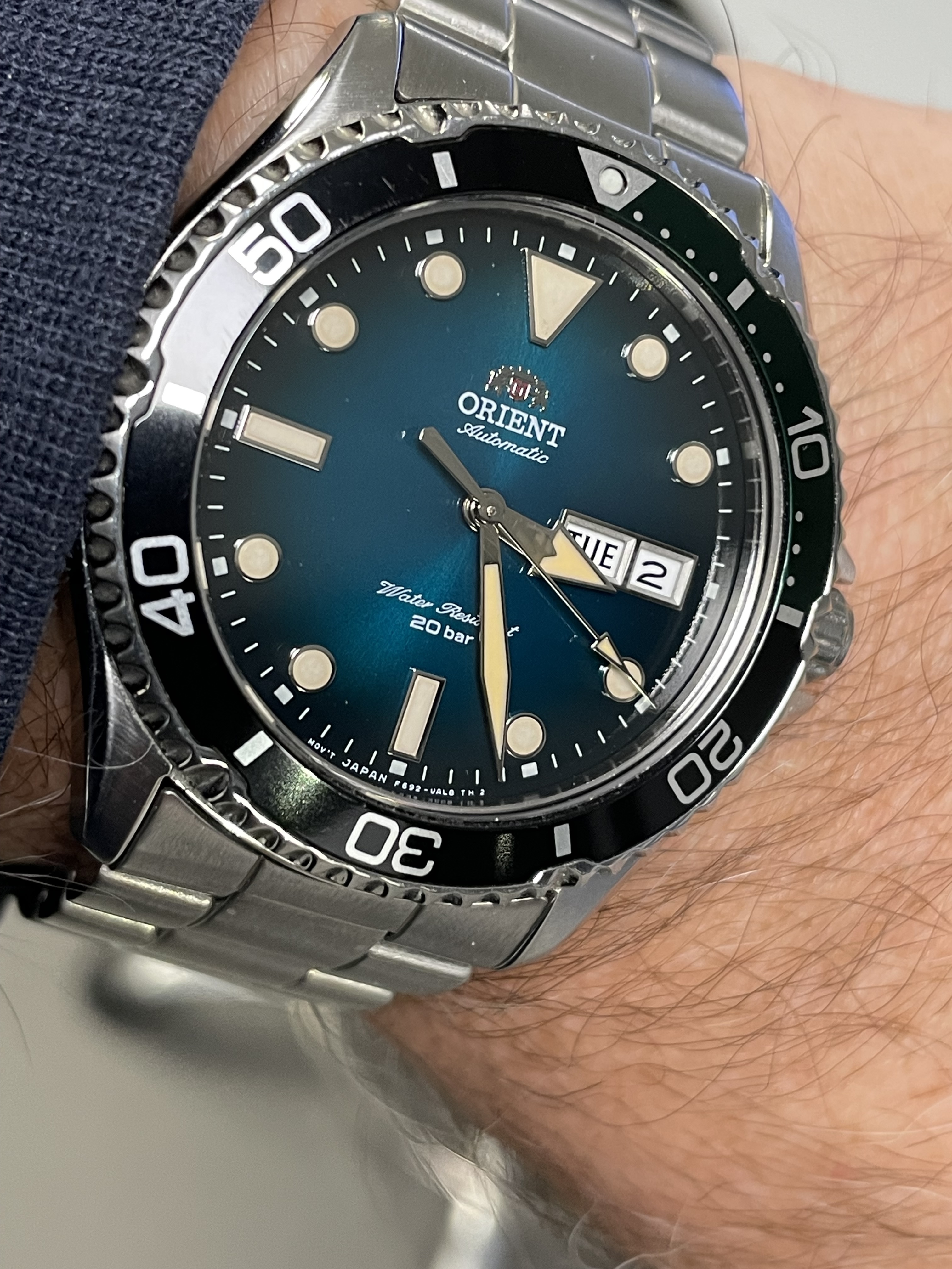 The “Stretto Date” will probably be the core of the family. This model uses Orient’s familiar F6722 automatic movement to present the time and date, wrapped in a 38.5mm wide case. With the 45.5mm lug-to-lug dimension, 11.2mm thickness and 20mm lug width, it’s a very practical size that should work for a majority of potential buyers.