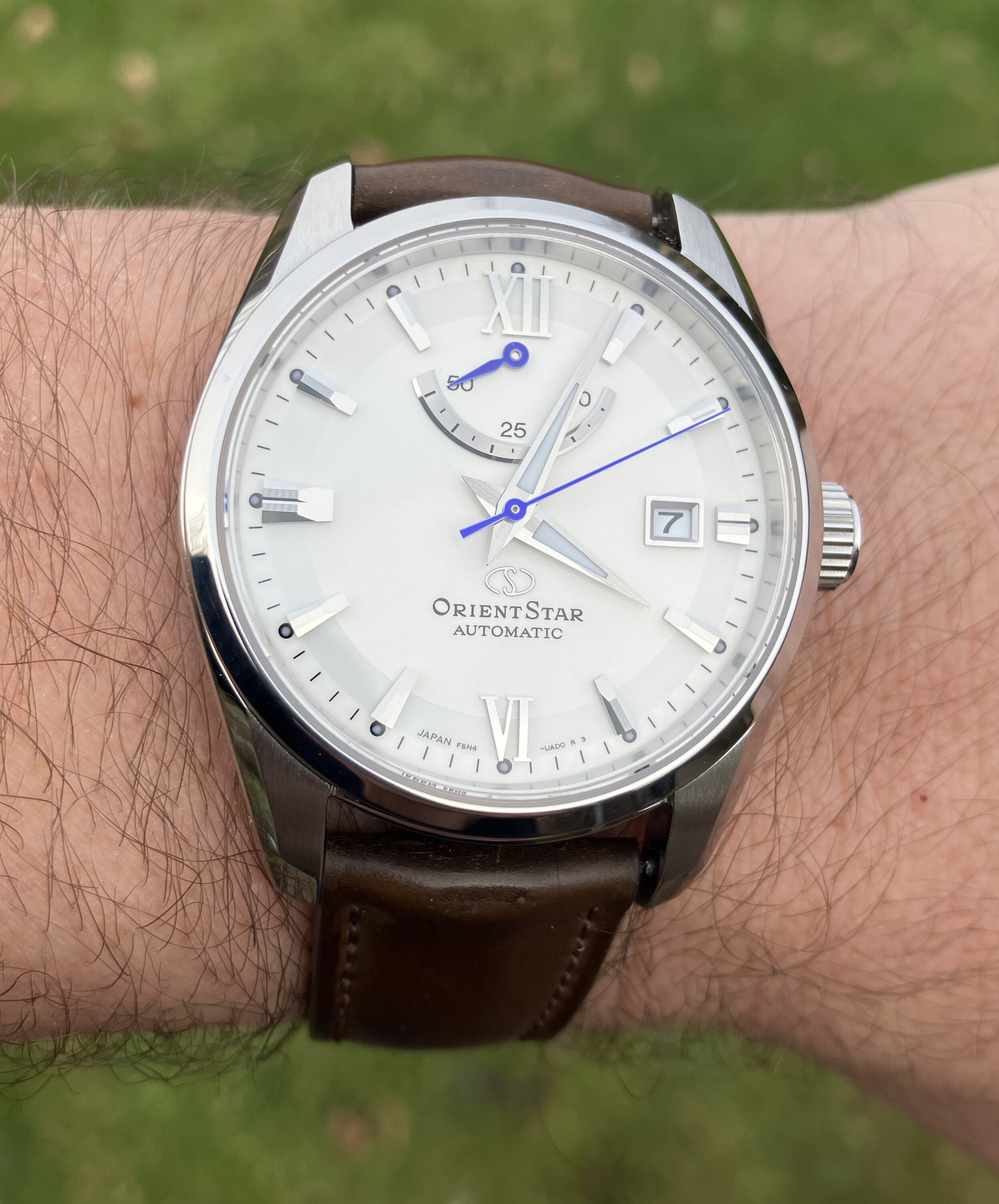 Ik wou eens een netter horloge proberen. Dus heb niet echt een vergelijking. Maar de band zit prima en erg fijne kastmaat in 38mm en een bol glaasje ![]()