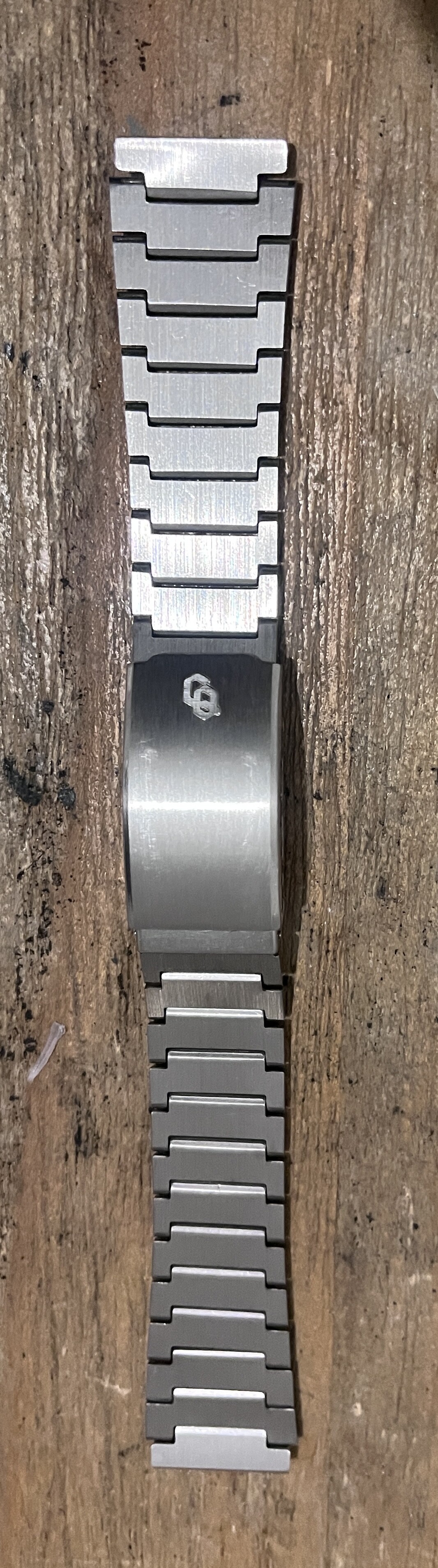Mijn plan is om het horloge op te knappen. Om te beginnen wil ik de originele stalen band kopen. Om de zoektocht wat te vereenvoudigen ben ik benieuwd naar een referentienummer van de (missende) band. Op internet kwam ik een vergelijkbaar horloge tegen met deze band. Geen idee of deze origineel is.