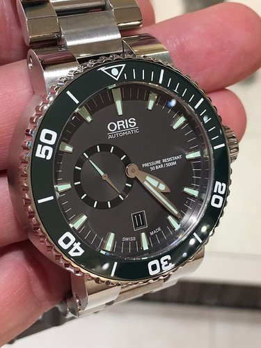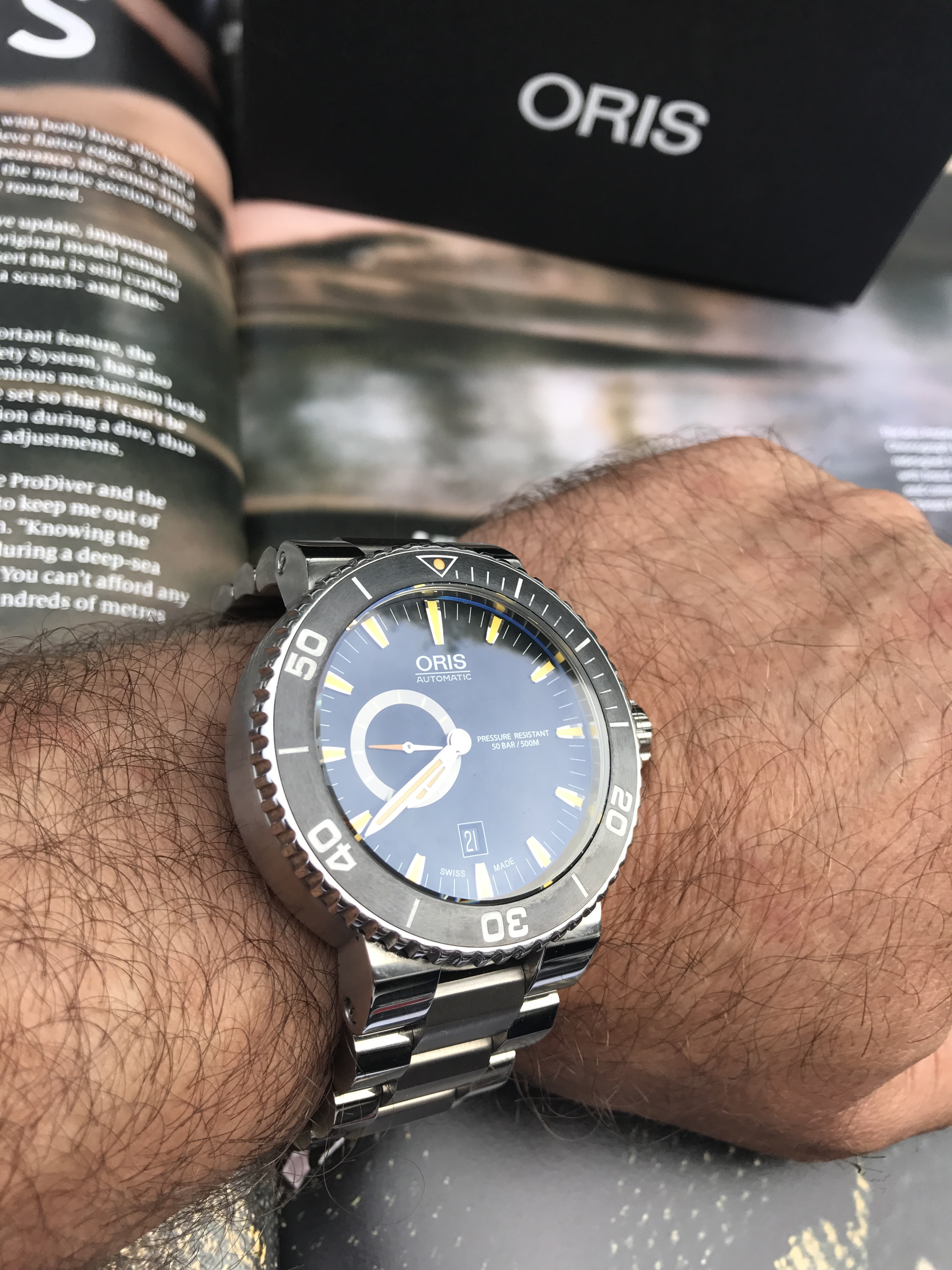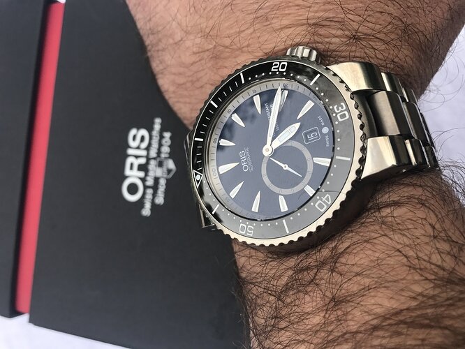 De Titan C is ook wel mijn smaak, maar ik heb deze week de 46mm Aquis Small second, date van @Firly zijn broer rond de pols gehad en die was duidelijk te groot voor mij, dus ik vrees er wel een beetje voor…