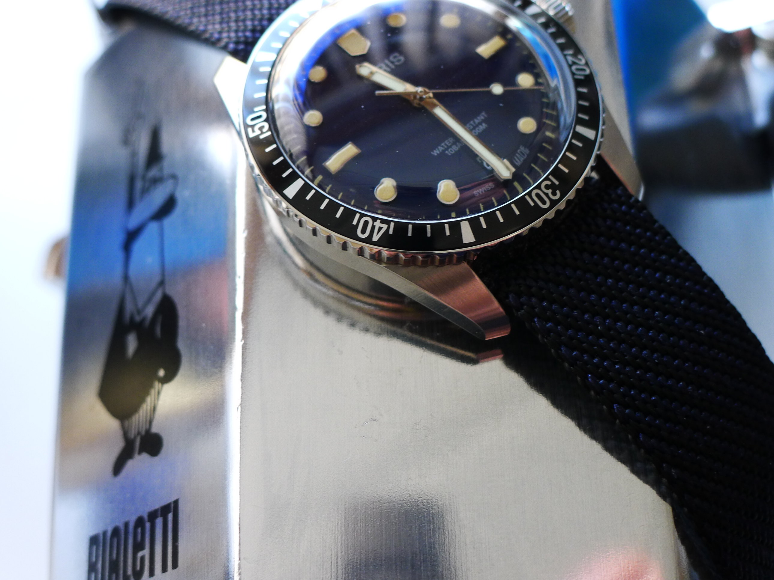 Btw ik heb er een Rios Horween cordovan strap op gedaan. Deze is ZO comfortabel. en na maanden is ie nog steeds punt gaaf. De donker bruine leren oris band die ik erop had gedaan was al snel behoorlijk afgeragd. Dit cordovan leer is wat steviger / minder zichtbaar voor krassen.