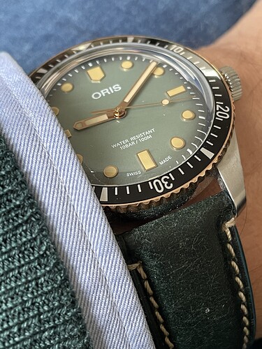 Beide opties zijn heerlijk. De rubber Oris Tropic band zou overigens mijn voorkeur hebben over leder. Dat is zo’n enorm fijne band en staat de 65 erg goed.