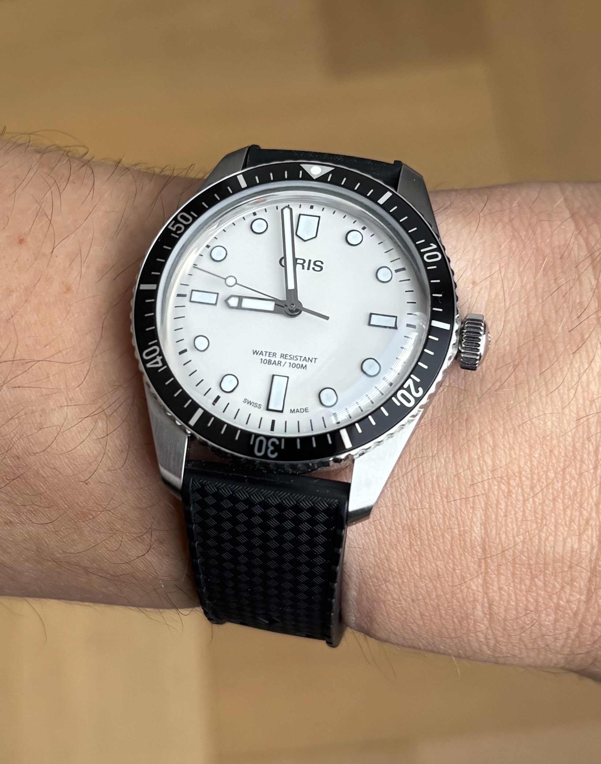 Gelijk maar besloten van plaats te ruilen met de de afgelopen week non stop gedragen Tudor en deze Oris weer eens om de pols te doen. En wat draagt ie lekker!