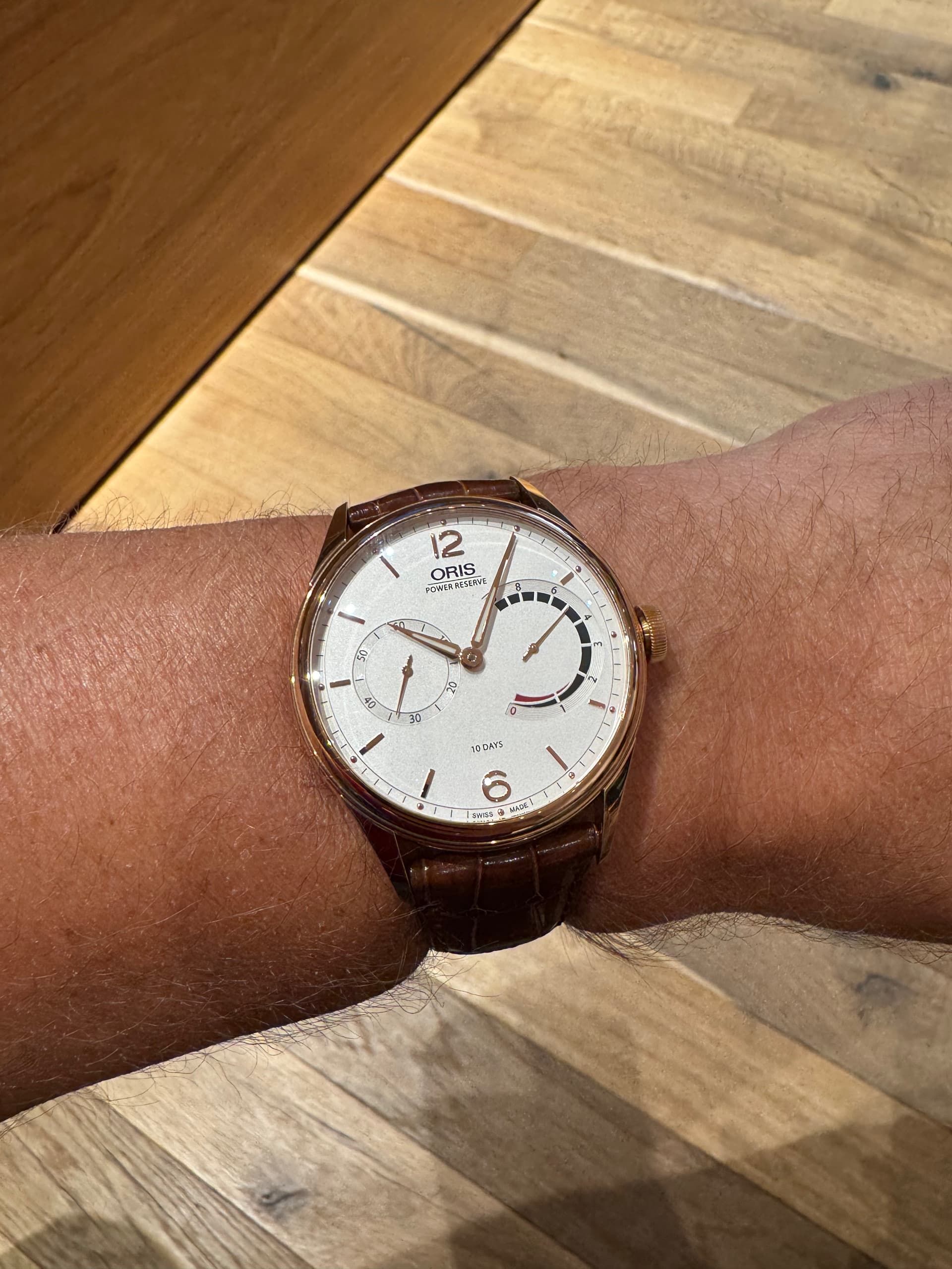 Zelf enkele gehad. Als je hem qua maat kunt hebben is het een topper. De gangreserve eens ‘gemeten’ en gaat zelfs nog bijna een dag verder dan Oris aangeeft ![]()