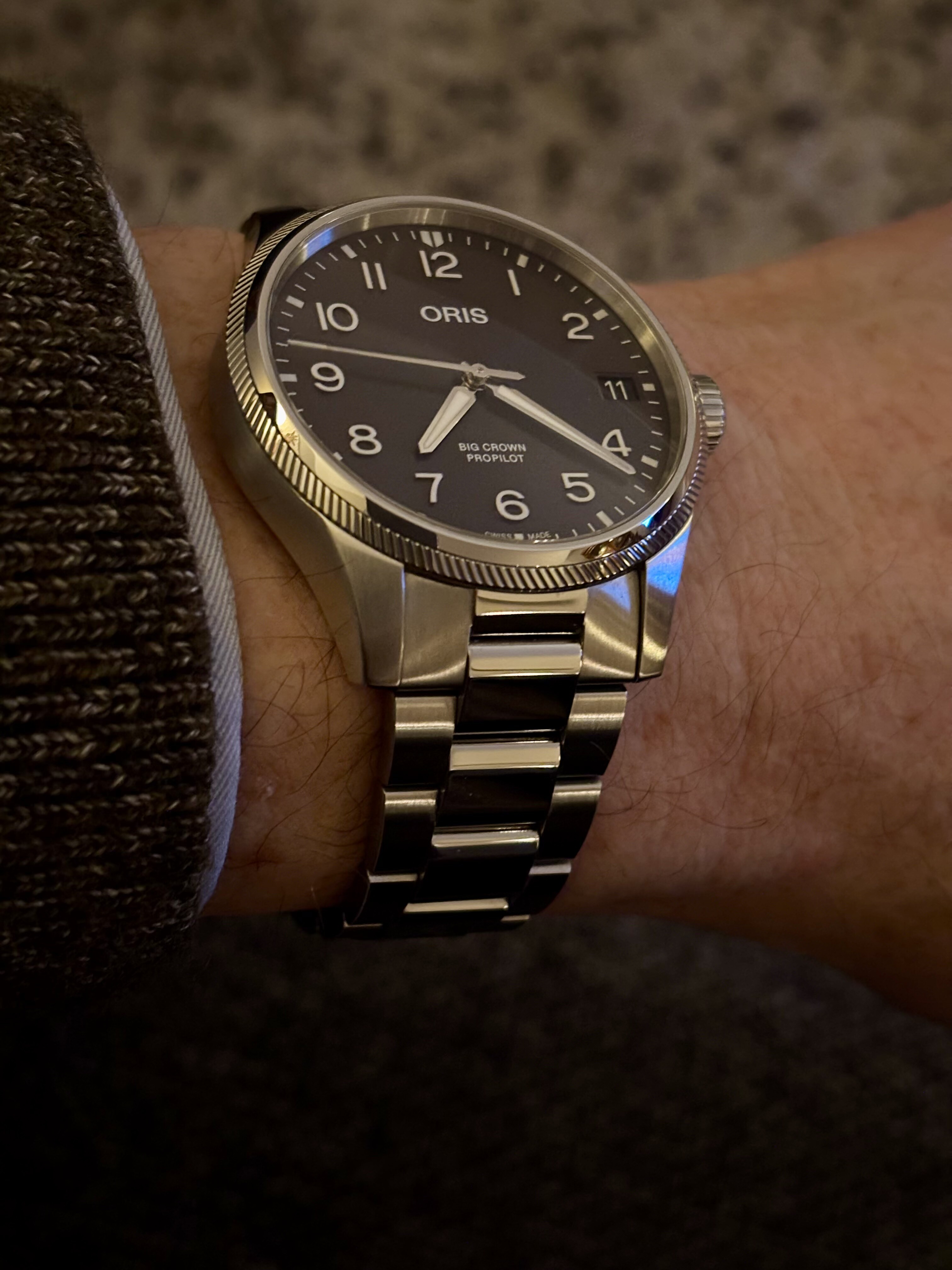Vandaag bij juwelier DeTijd de nieuwe Oris Propilot in het echt bekeken en gepast,had mijn Propilot om en vond die naast elkaar liggend toch wel een stuk mooier.