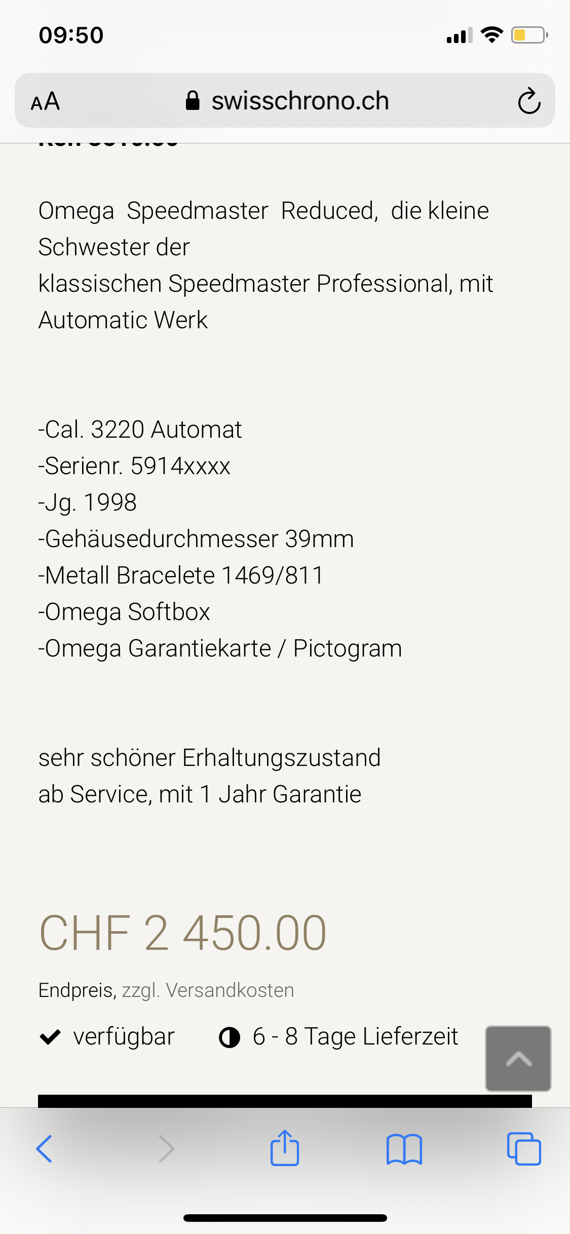 Voordat we allemaal boos gaan doen, ik heb hem een sms gestuurd, want ik zoek ook een Speedy Reduced. Ja, ik zou ook niet zomaar een nummer online zetten maar deze man is 68 en is niet zo digitaal vaardig als wij allen.
