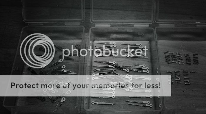 Hij heeft alle wijzer-sets voorbewerkt en zal ze één dezer dagen ontvetten met thinner, gronden en voorzien van de mooie matzwarte verf. Zodra hij hiermee klaar is, stuurt hij ze samen met de onderste wijzerplaten naar onze Zwitserse partij om ze daar van de juiste lume te laten voorzien.