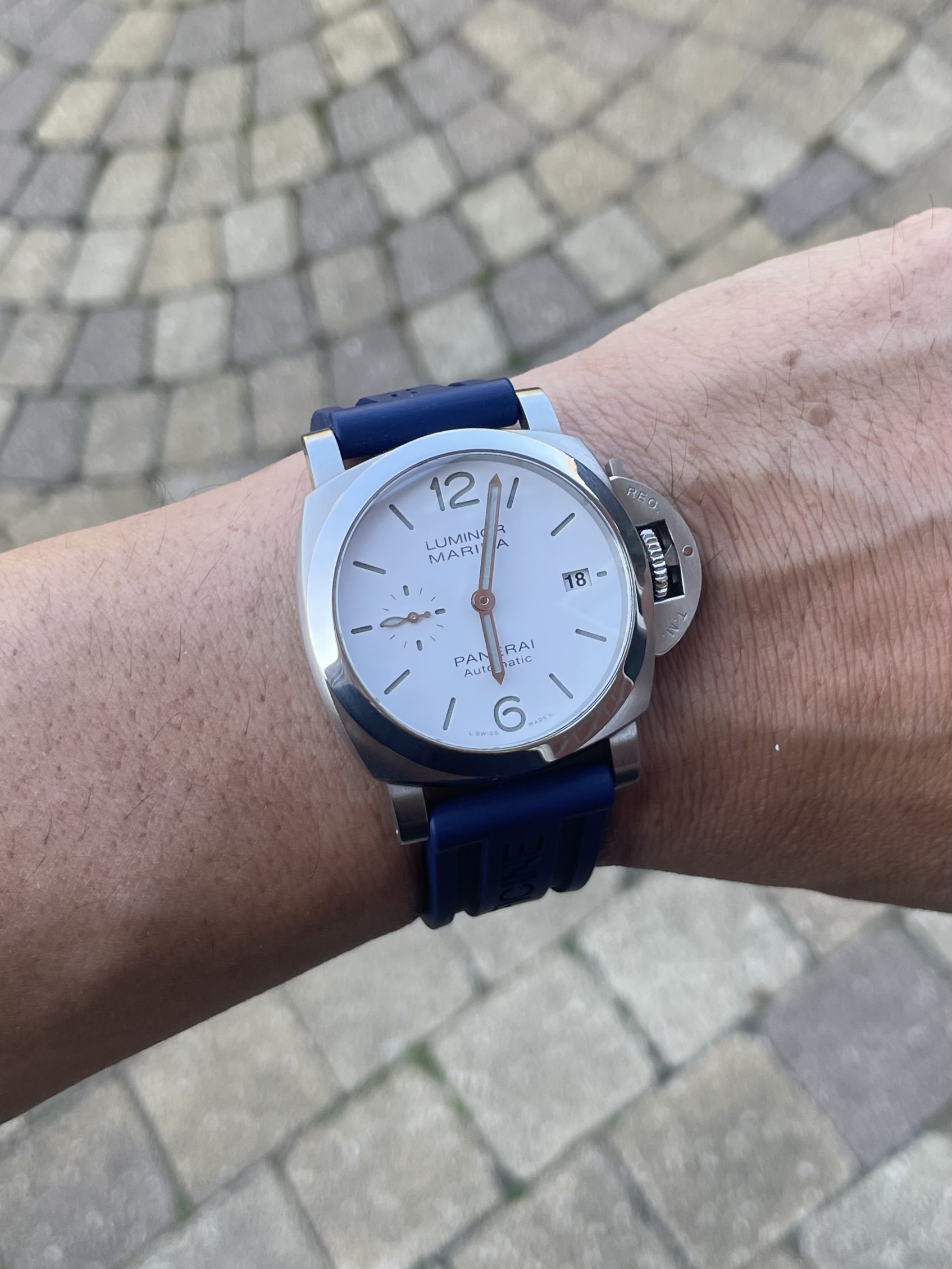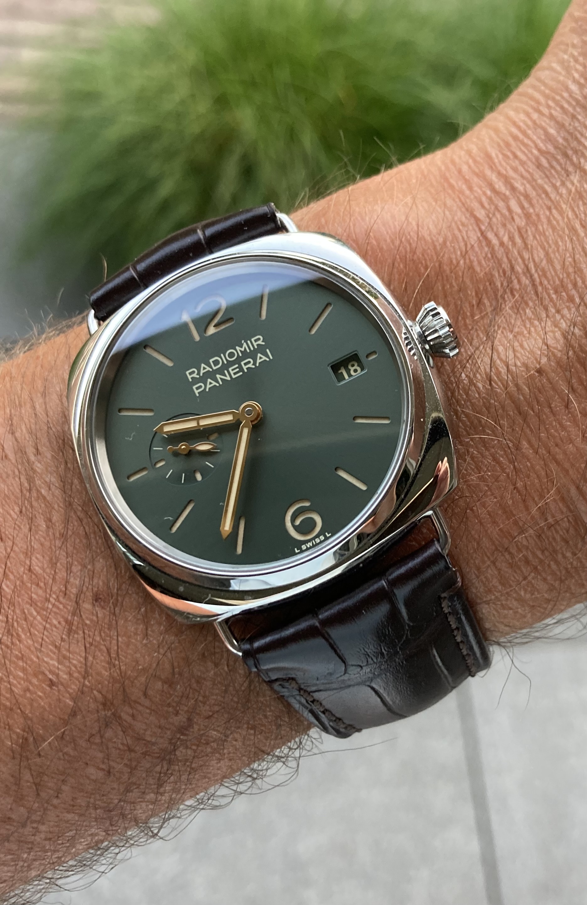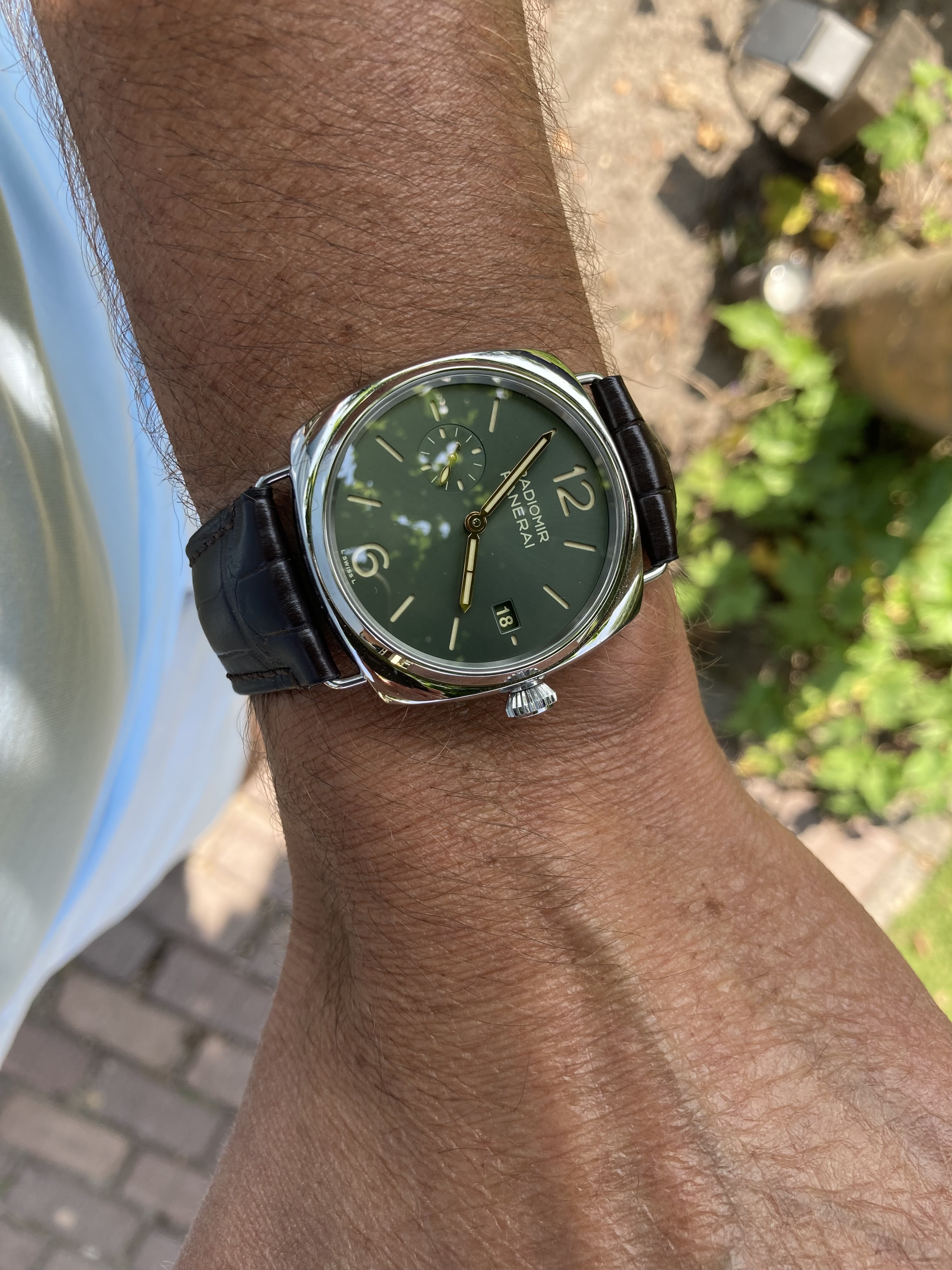 Ik zie hier leuke rubberen banden voorbij komen. Nu het zonnetje flink schijnt vind ik dat in plaats van mijn leren bandje ook wel wat. Zit zelf te denken aan een zwarte of groene rubberen band. Wat vinden jullie qua kleur en past rubber op een - toch wel wat meer dressy - Radiomir Quaranta?