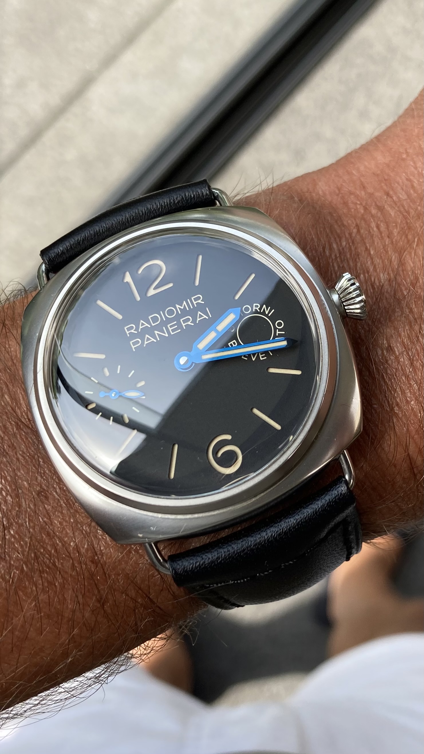 Op vakantie kwam ik er bij de AD achter dat een 45mm Radiomir toch best wel kon op mijn pols en ook hetgeen was wat ik wellicht miste…
