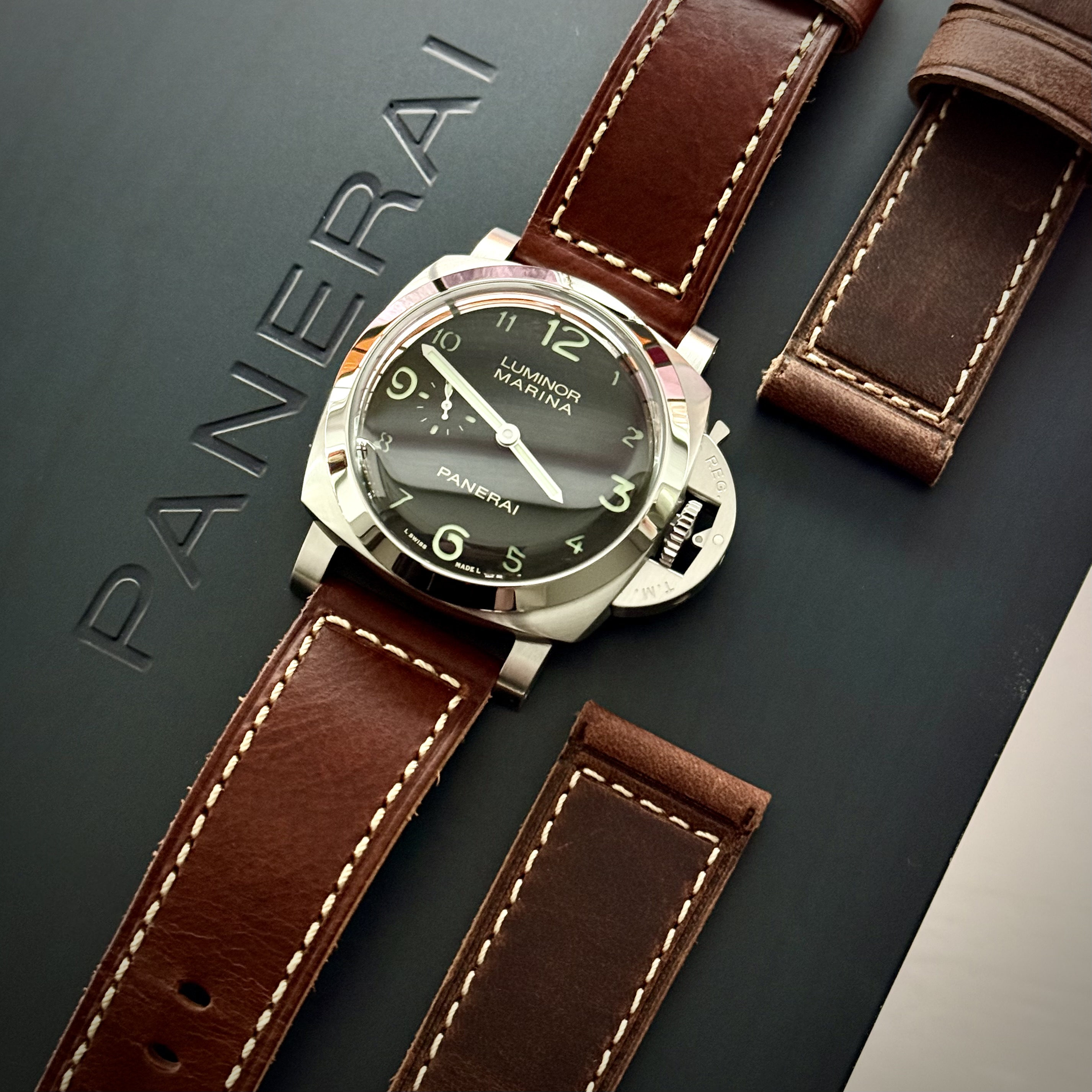 Daarnaast had ik online via Panerai een nieuwe vintage band gekocht. Eén van de drie nieuwe die recentelijk gereleased zijn. Het betreft degene die gemonteerd zit… die er los langs ligt op onderstaande foto’s is de originele waarop de PAM01759 geleverd is.