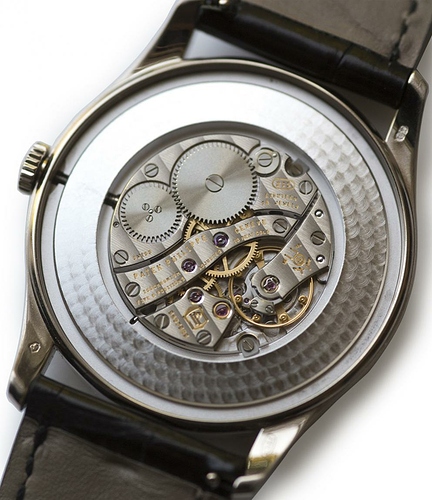 Nu snap ik de keuze van de niet-doorzichtige caseback ook… Uurwerk is prachtig afgewerkt, echt PP, maar een beetje klein…
