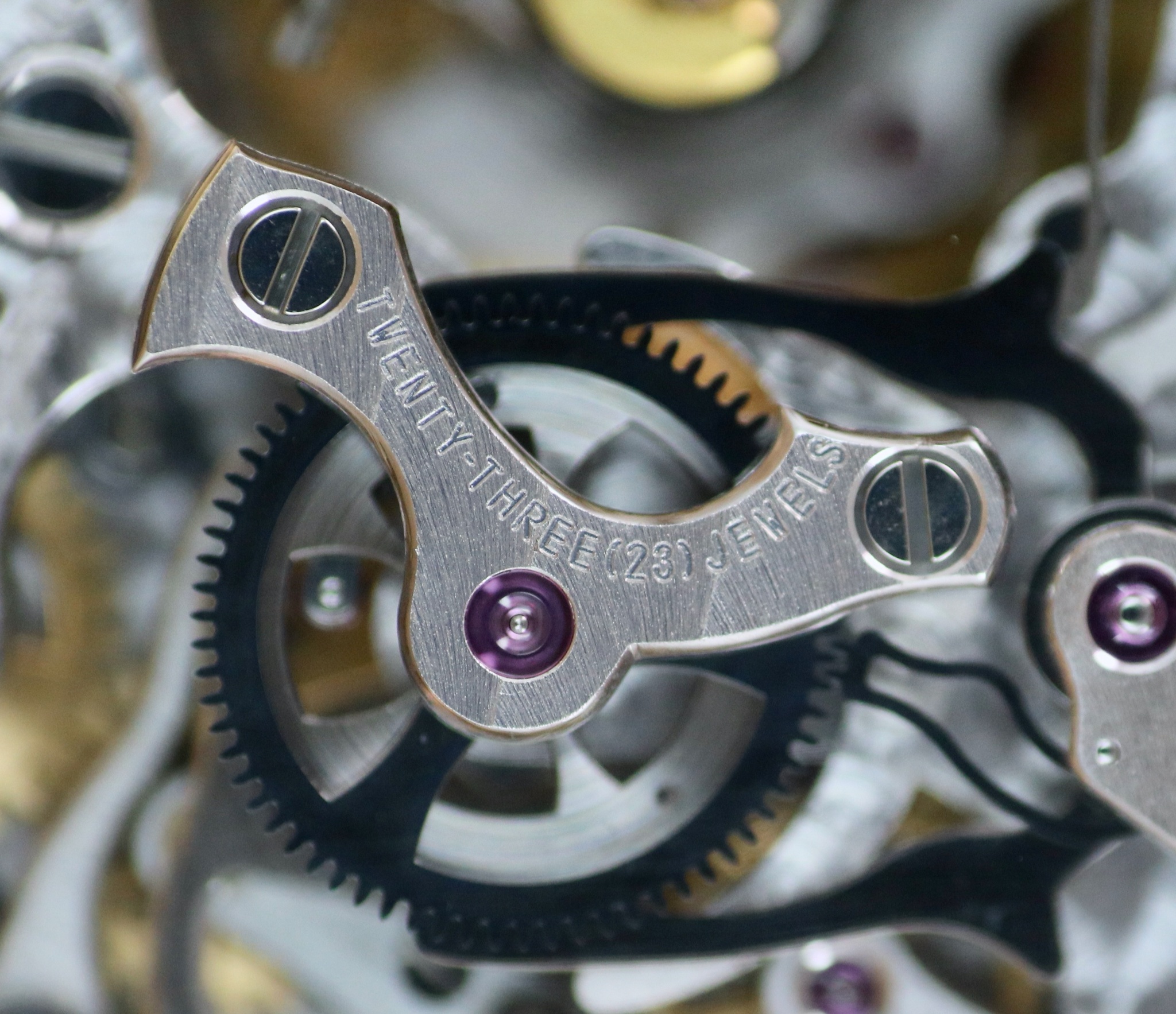 Wat mij namelijk opviel: de manual finishing op de oude Lemania’s oogt vaak verrassend rommelig. De anglage is niet altijd gelijkmatig, de inner angles zijn vaak echt het minimale, en de totale afwerking mist consistentie. En dan is de vraag eerlijk: wil ik dan een (in de basis) standaard uurwerkarchitectuur die je in de verte ook in een oud Speedmaster-achtig verhaal herkent, maar dan met een matige en wisselende handmatige finish?