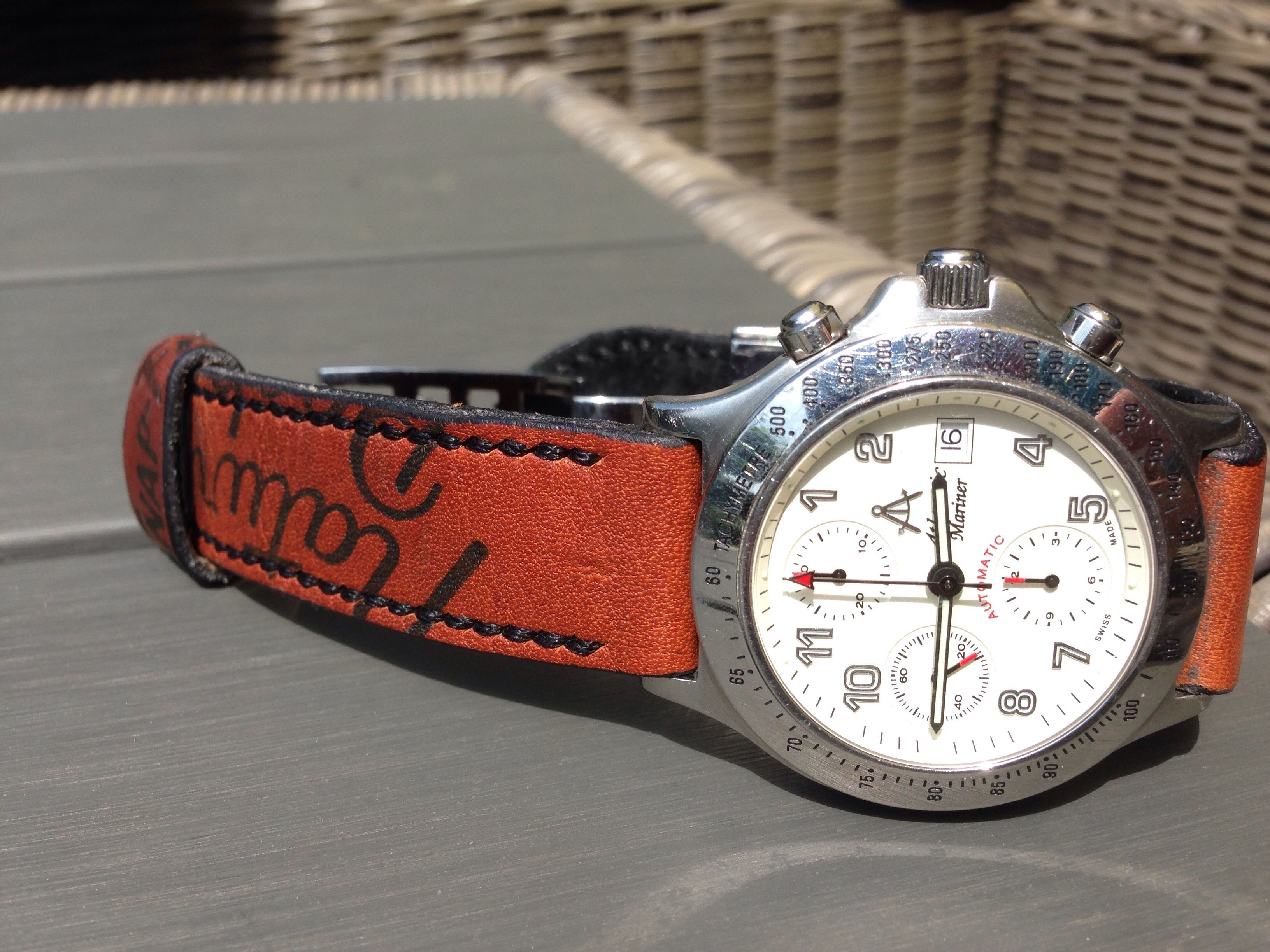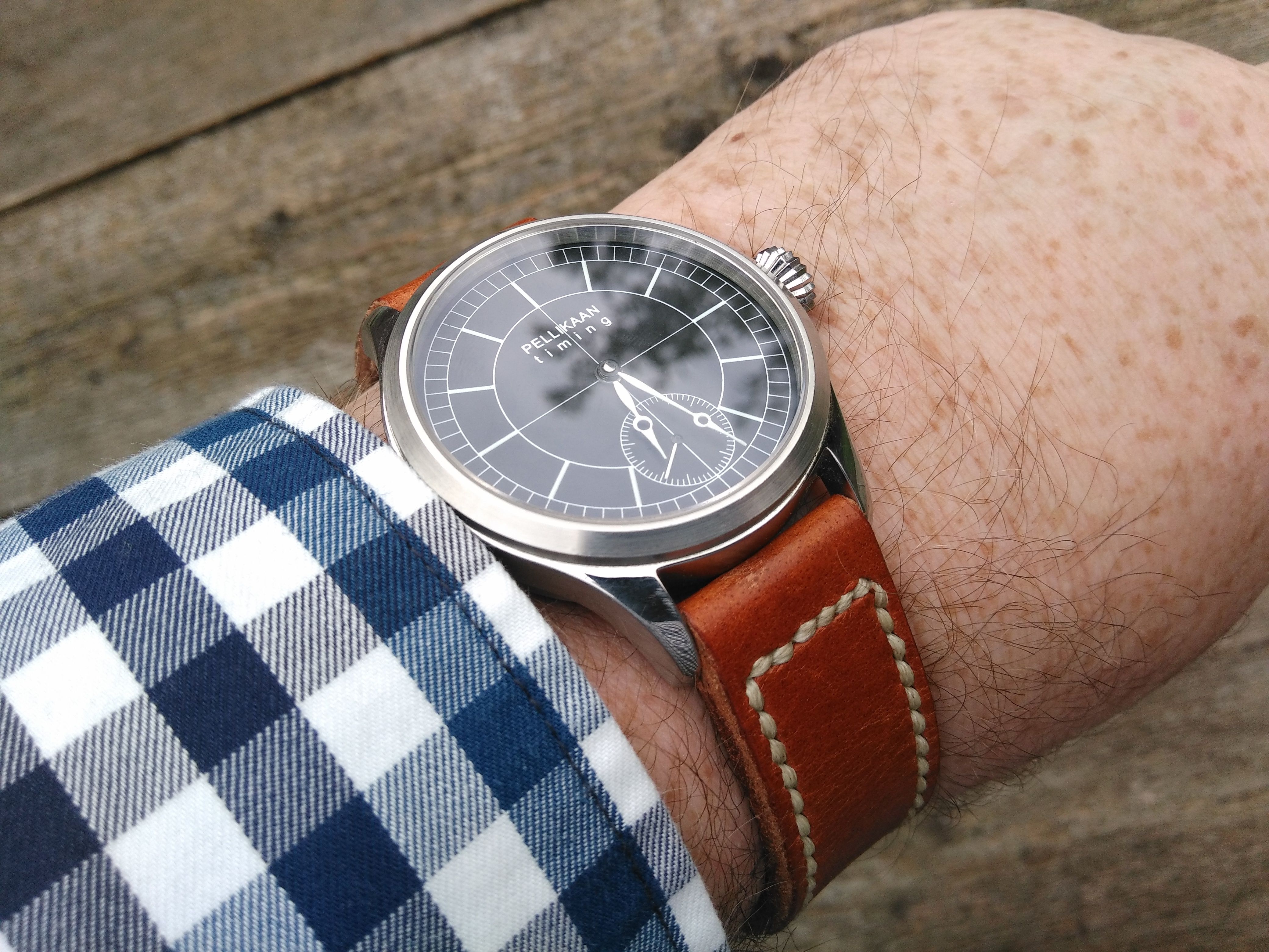 Mooi! Normaal gesproken ben ik altijd te porren voor een NATO en juist niet voor leer maar in dit geval is het juist prima zo. De leren band is mooier op dit horloge, het komt visueel meer tot leven.