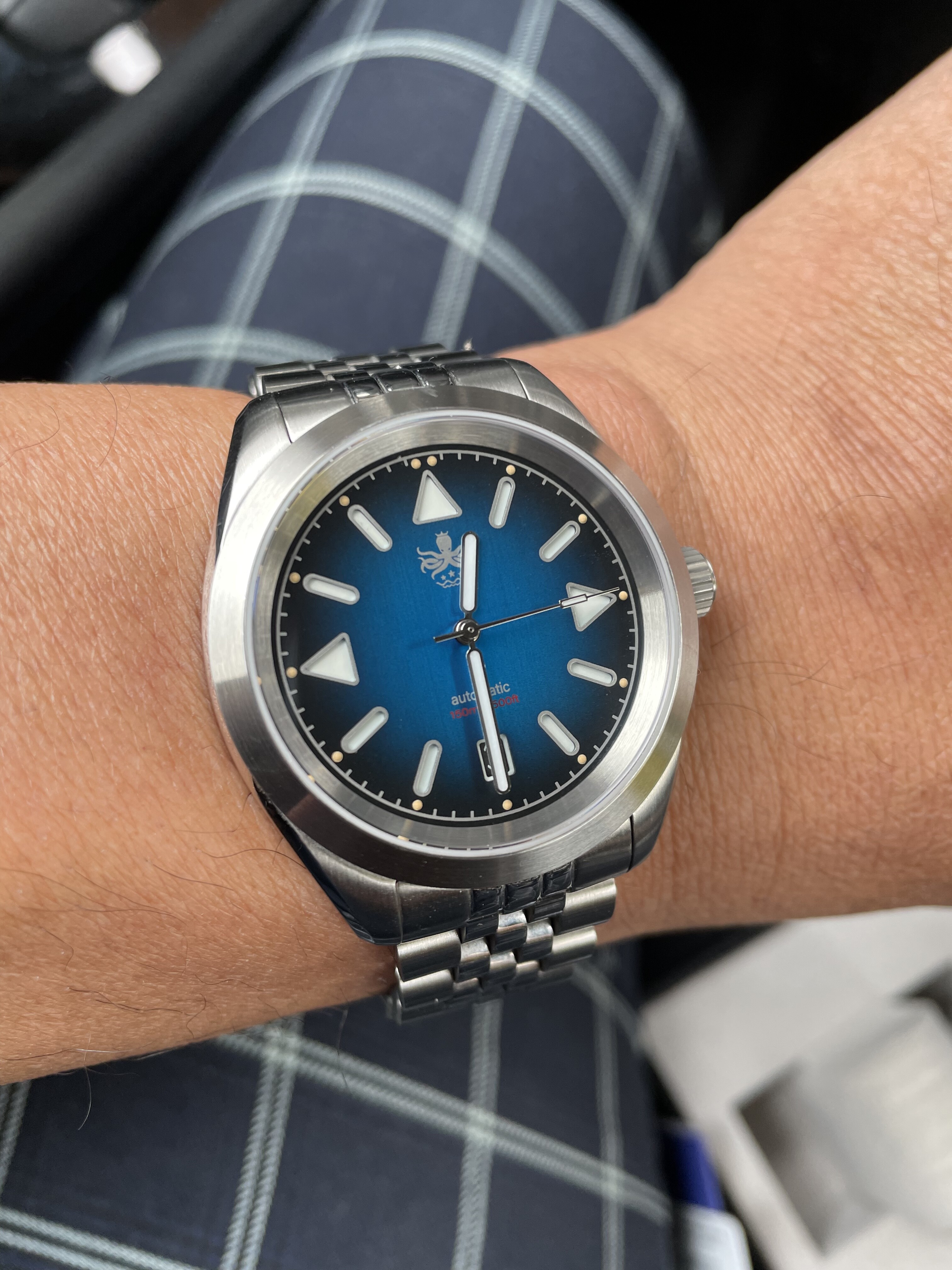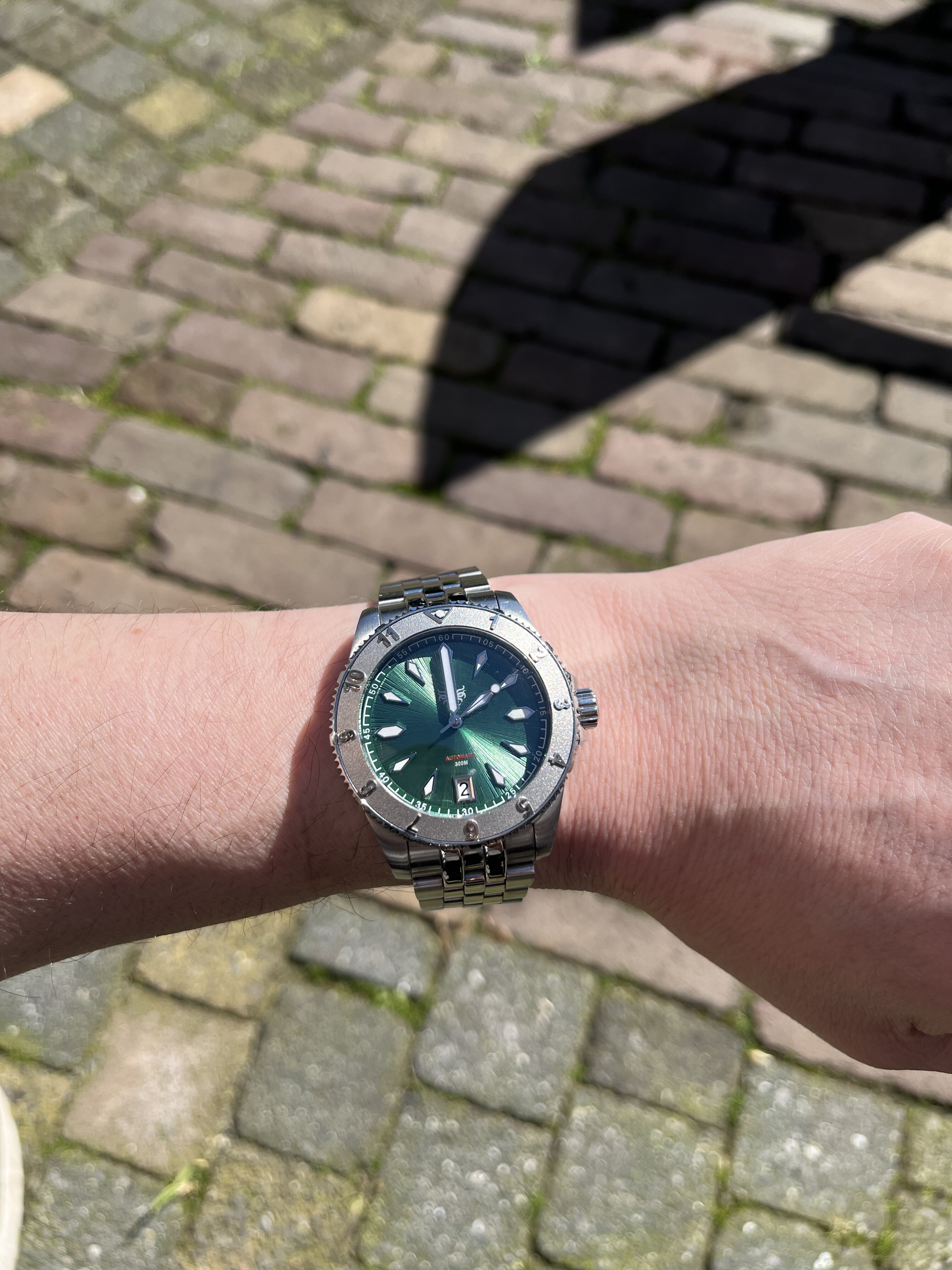 Een lekker no-nonsense horloge zoals we van Phoibos gewend zijn: prima betaalbaar met 399 euro, werkpaard Seiko NH34 GMT uurwerk, draagbare afmetingen met 39mm diameter, 45mm lug to lug en 13,5mm dik. En natuurlijk in 4 kekke kleuren te krijgen!