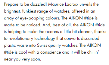 And, best of all, the AIKON #tide is helping to make the oceans a little bit cleaner, thanks to revolutionary technology that converts discarded plastic waste into Swiss quality watches.