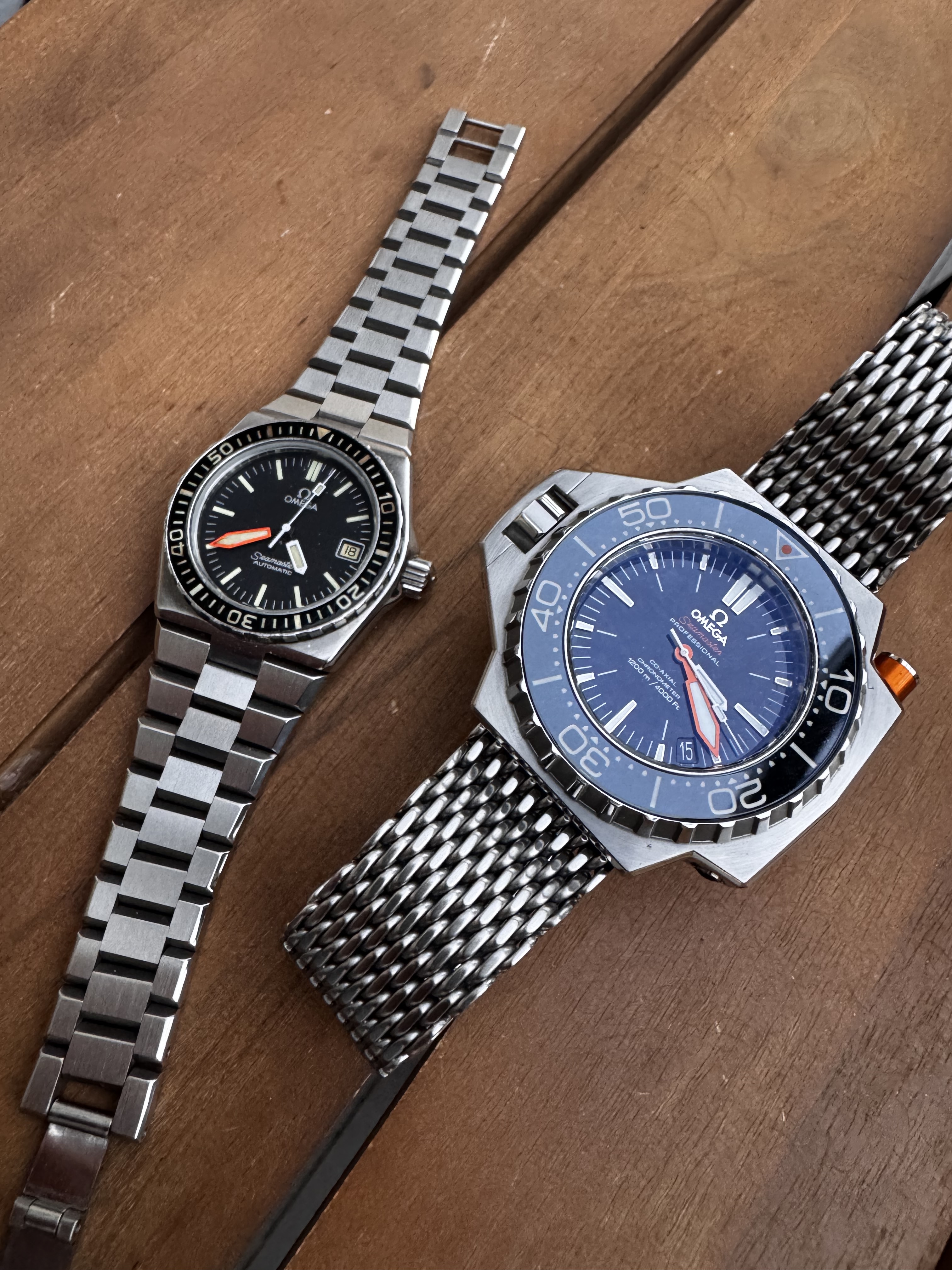 Duidelijk verschil in de font type op de bezel tussen de moderne staal en titanium.