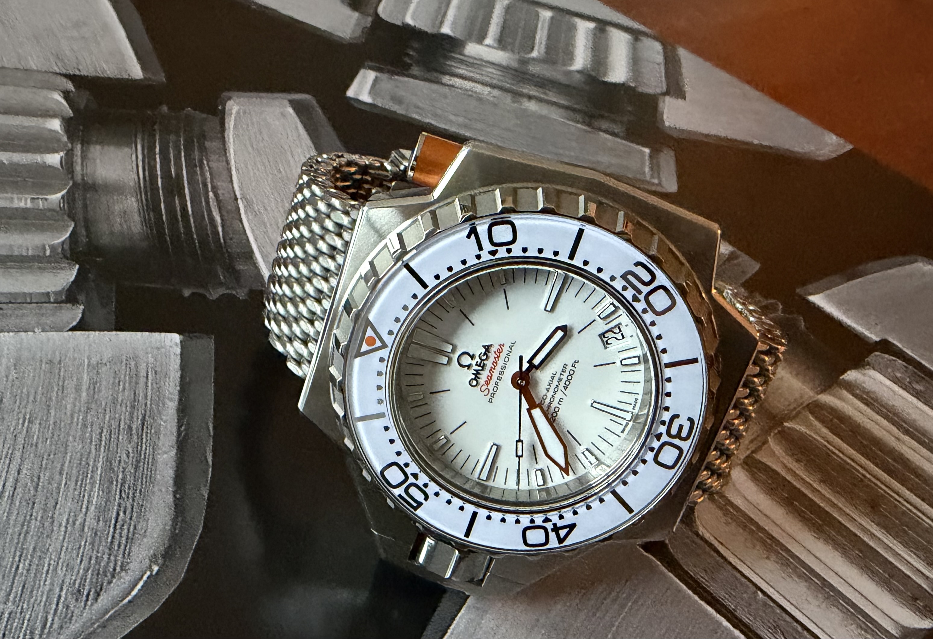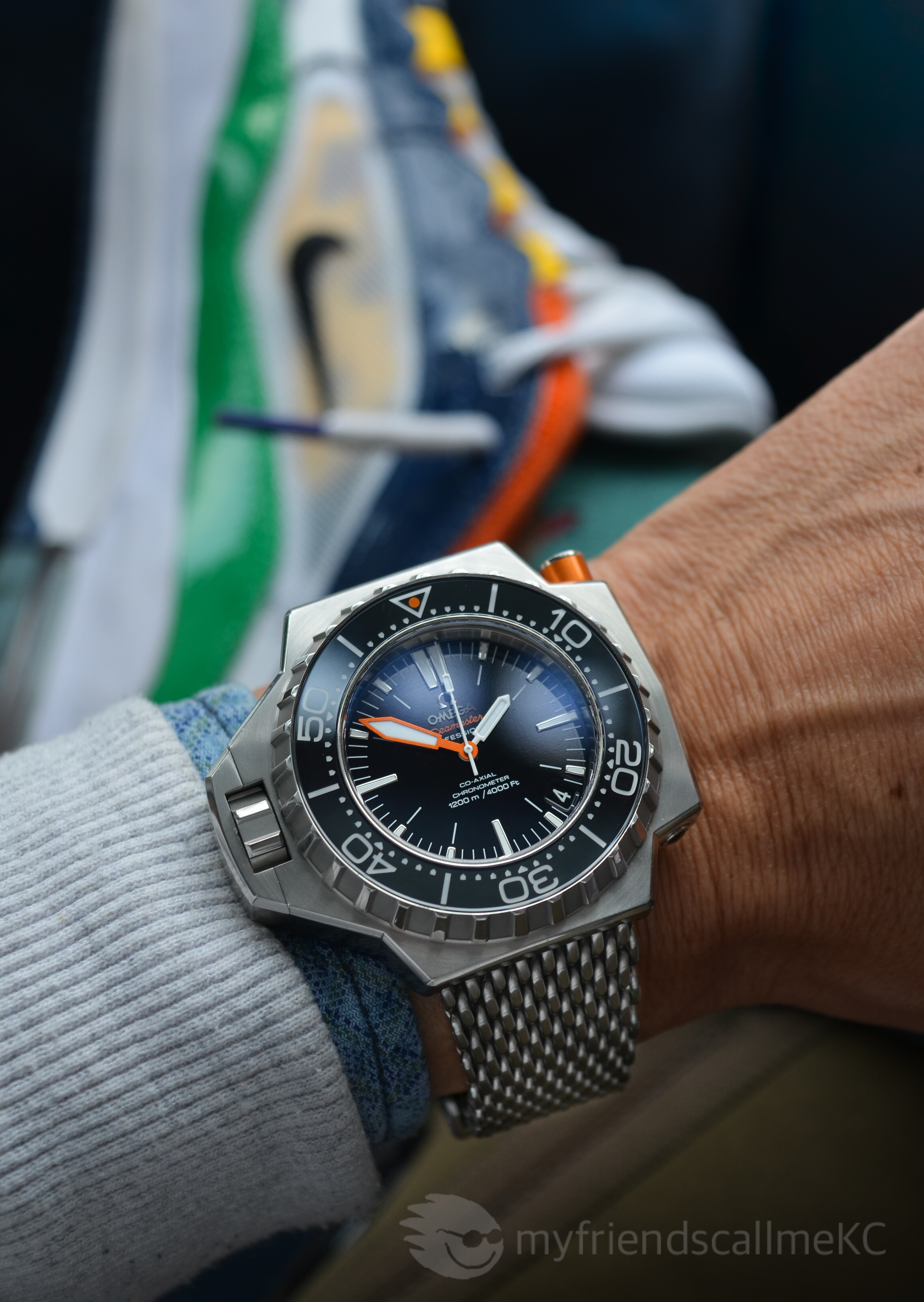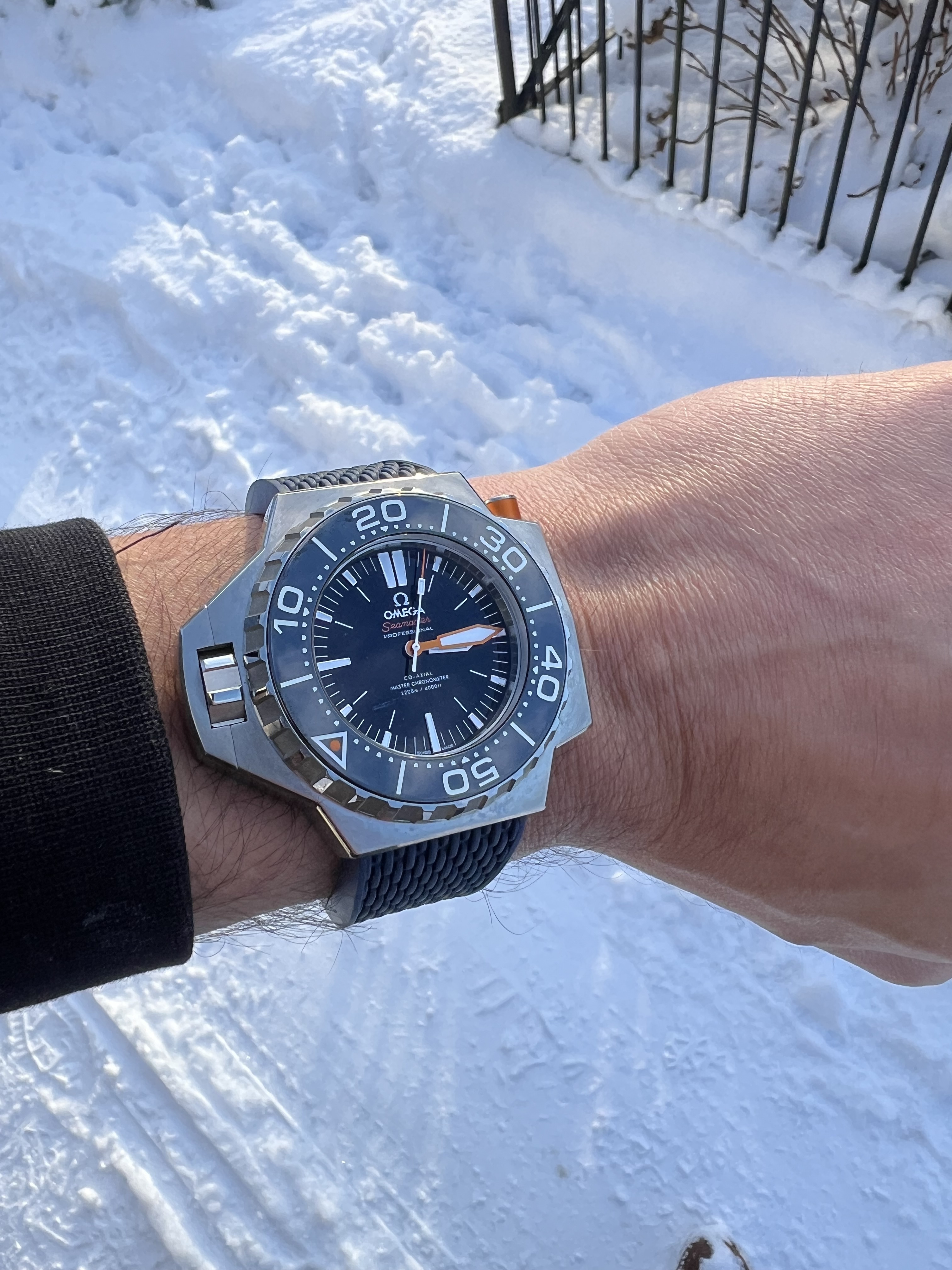 Titanium! Een prachtige uitgave. Wat lichter op de pols dan staal, maar bij voorzichtig lopen in de sneeuw is de drager nog steeds van verre te herkennen aan het ‘PloProf loopje’.