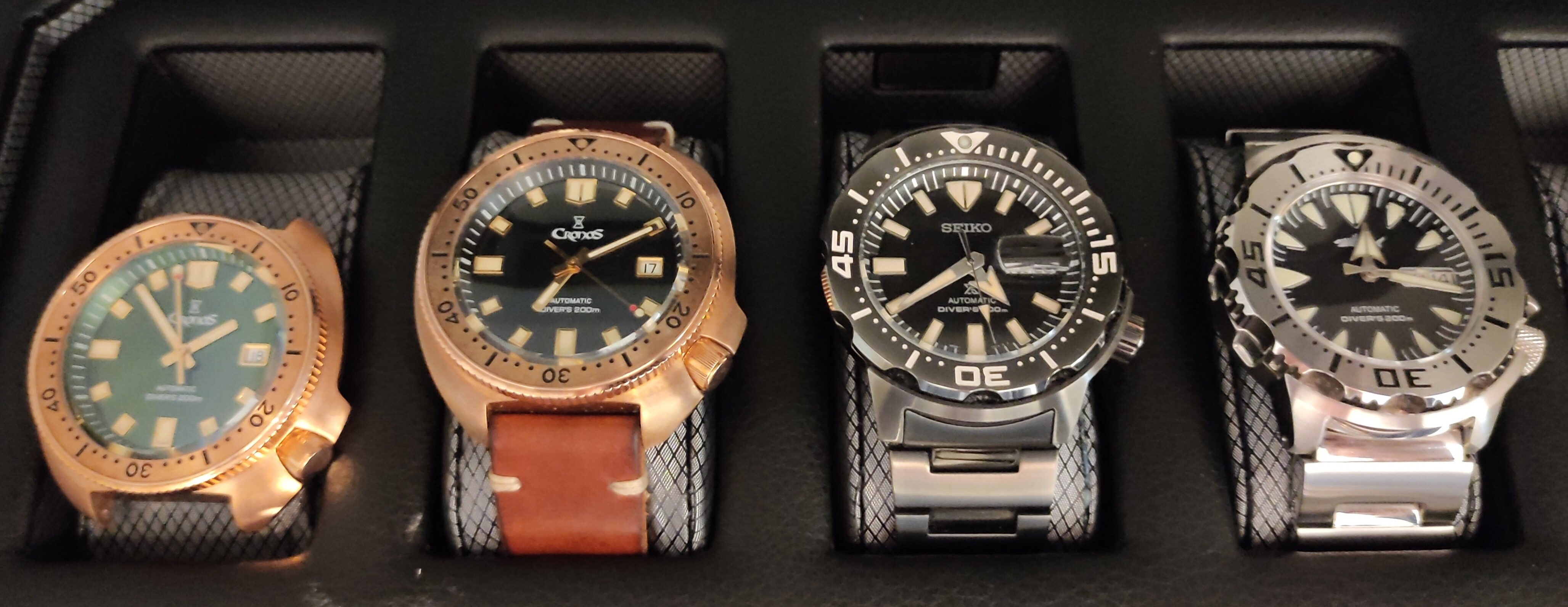 In mijn verzameling heb ik nu wel een hele duidelijke scheiding. Mijn dagelijkse horloges zijn 38mm (en één 40mm pilot) terwijl mijn beaters/vrijetijdshorloges 42-43mm zijn.