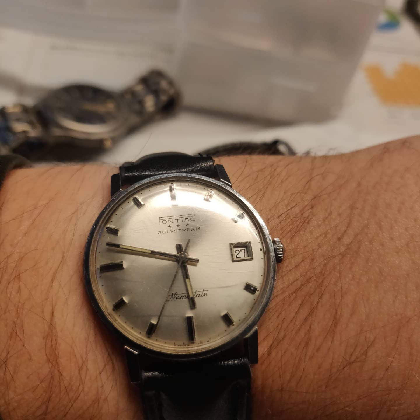 Memodate is een horloge met handopwinding en datum. 3 sterren zijn uurwerken van de hoogste kwaliteit van Pontiac, meestal Eta maar ook AS en andere leveranciers van uurwerken zijn in de arm genomen. Gulfstream is een aanduiding van meer luxe dan ‘gewone’ Pontiacs.