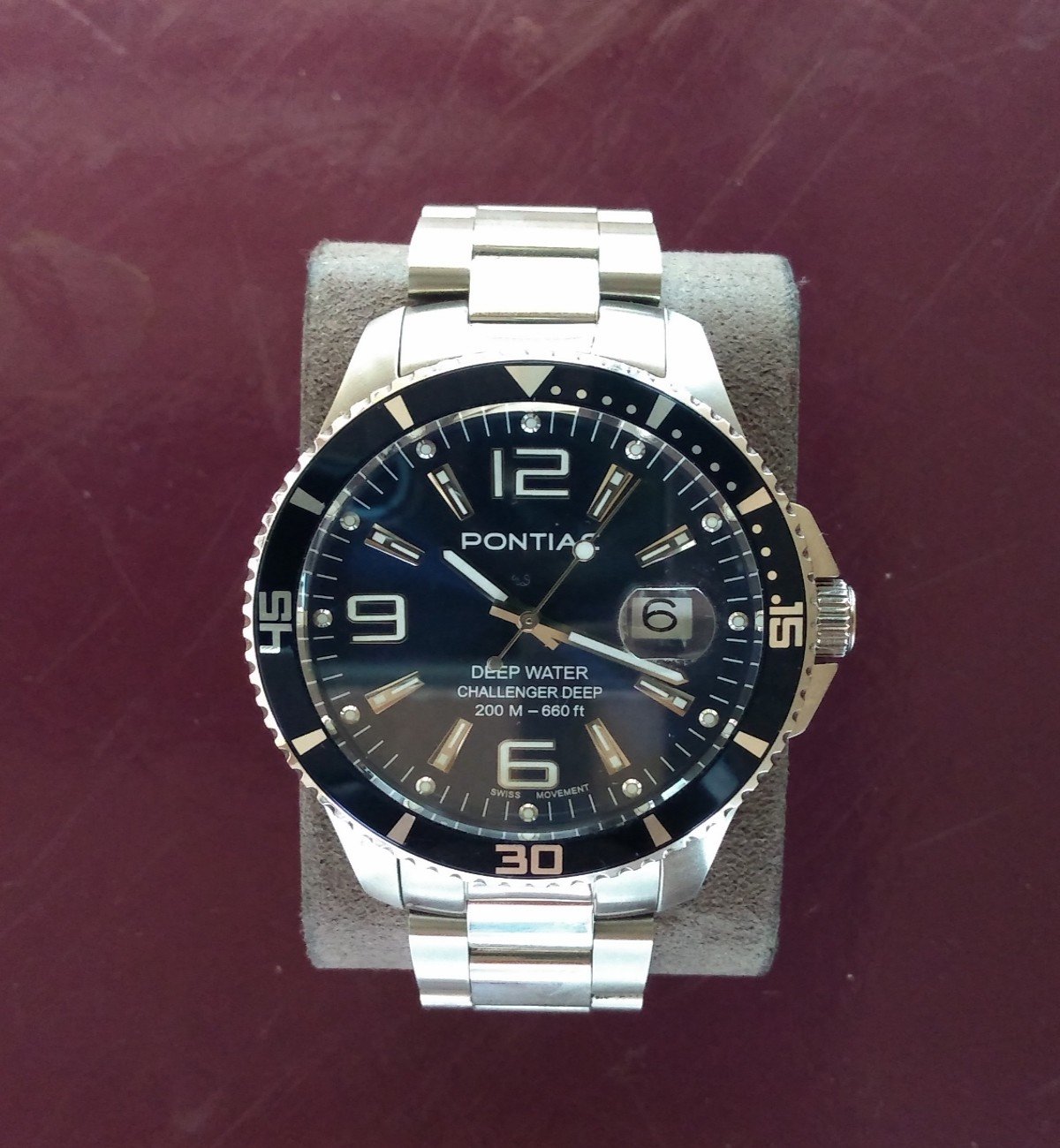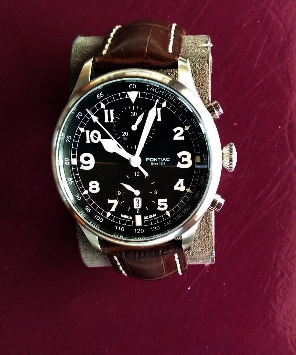 Mijn Pontiac Meangraf Super, lang geleden mijn eerste serieuze horloge, en nog nooit ergens anders gezien. Behalve dan als Yema Meangraf Super. Door Yema gemaakt voor Pontiac, neem ik aan.