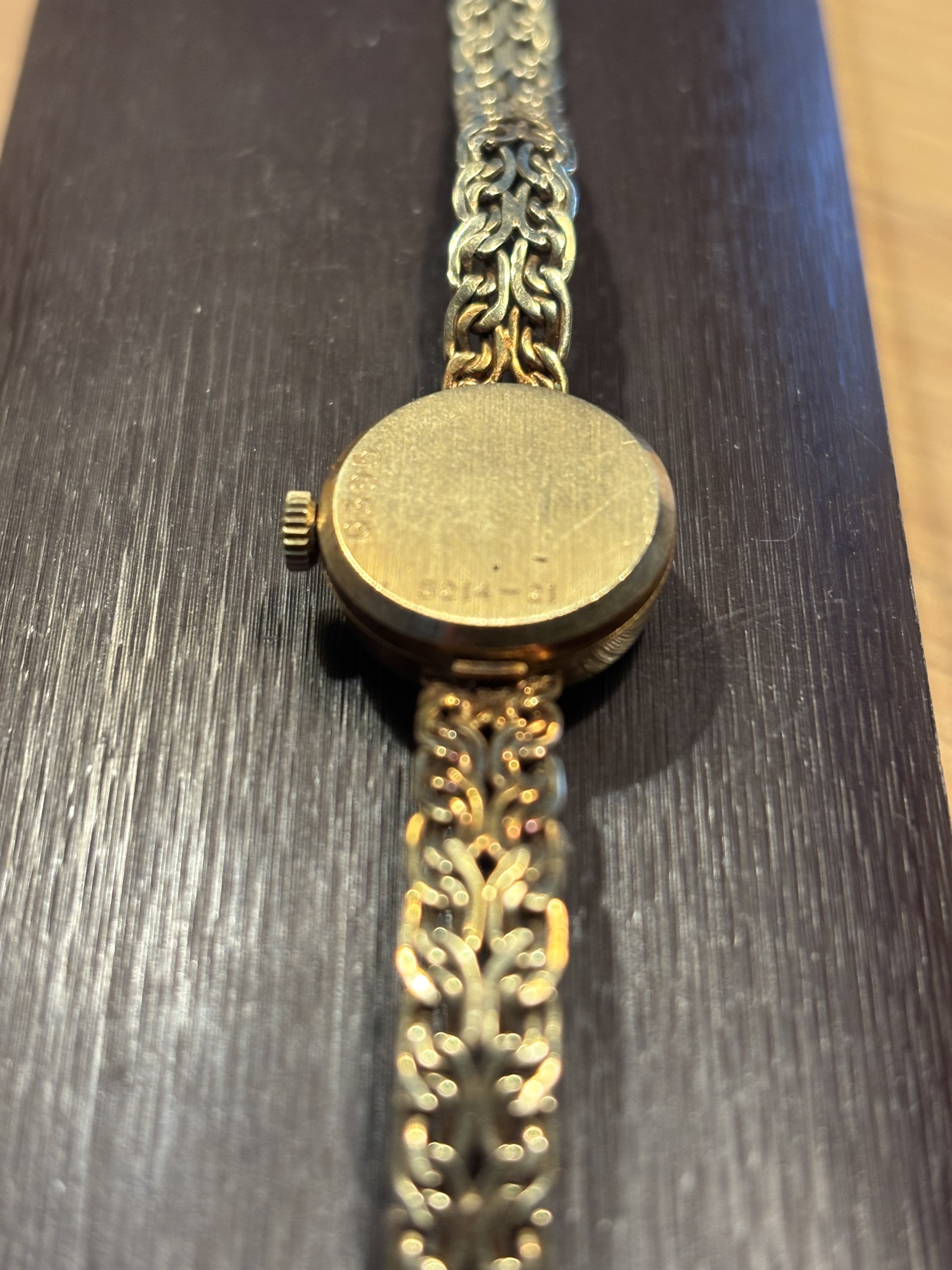 Aan het nummer is te zien dat een gouden kast met gouden band is met een 5 1/2 - 8’" werkje erin (hoogstwaarschijnlijk AS 1012 of 1677 oid.