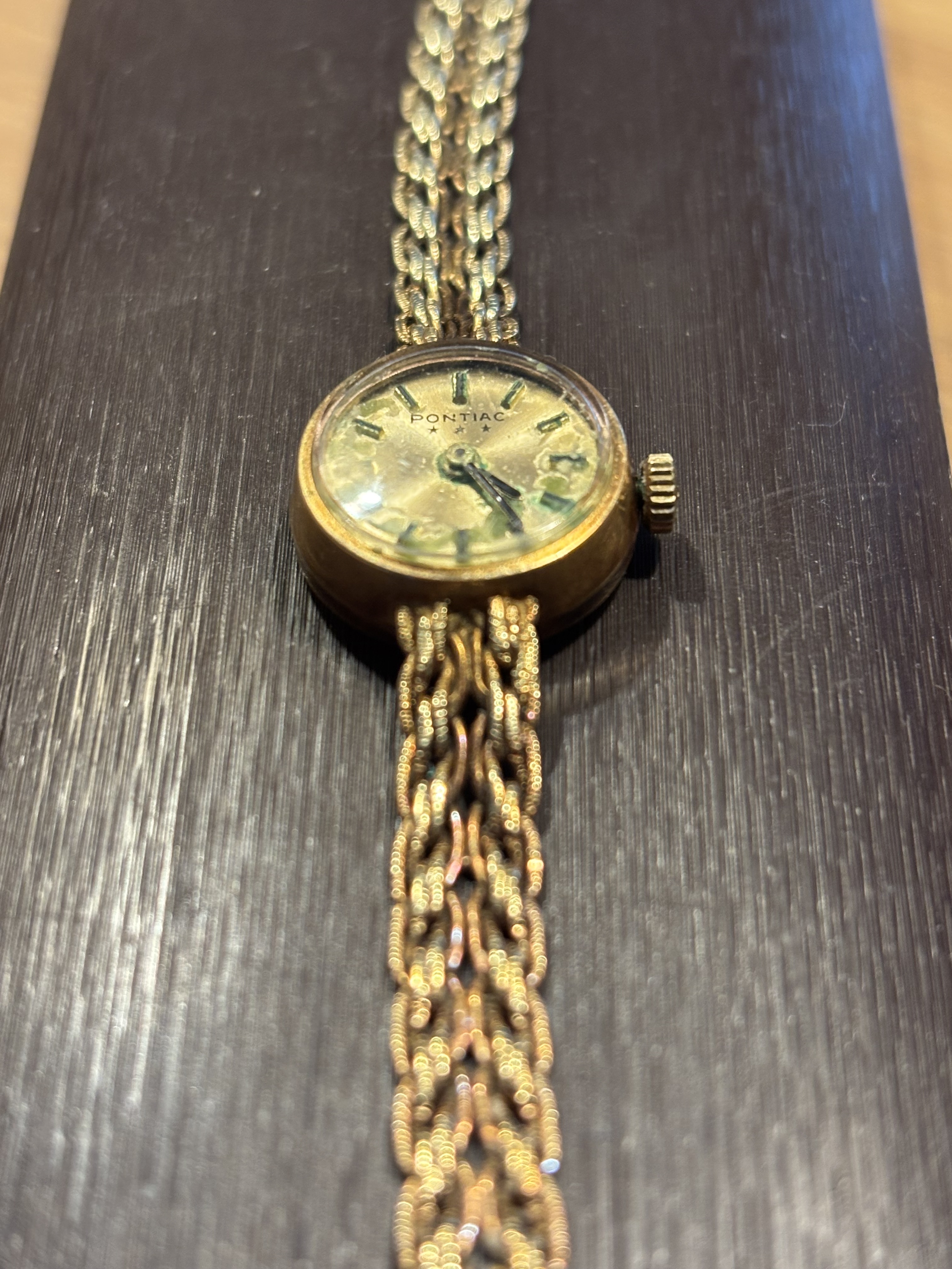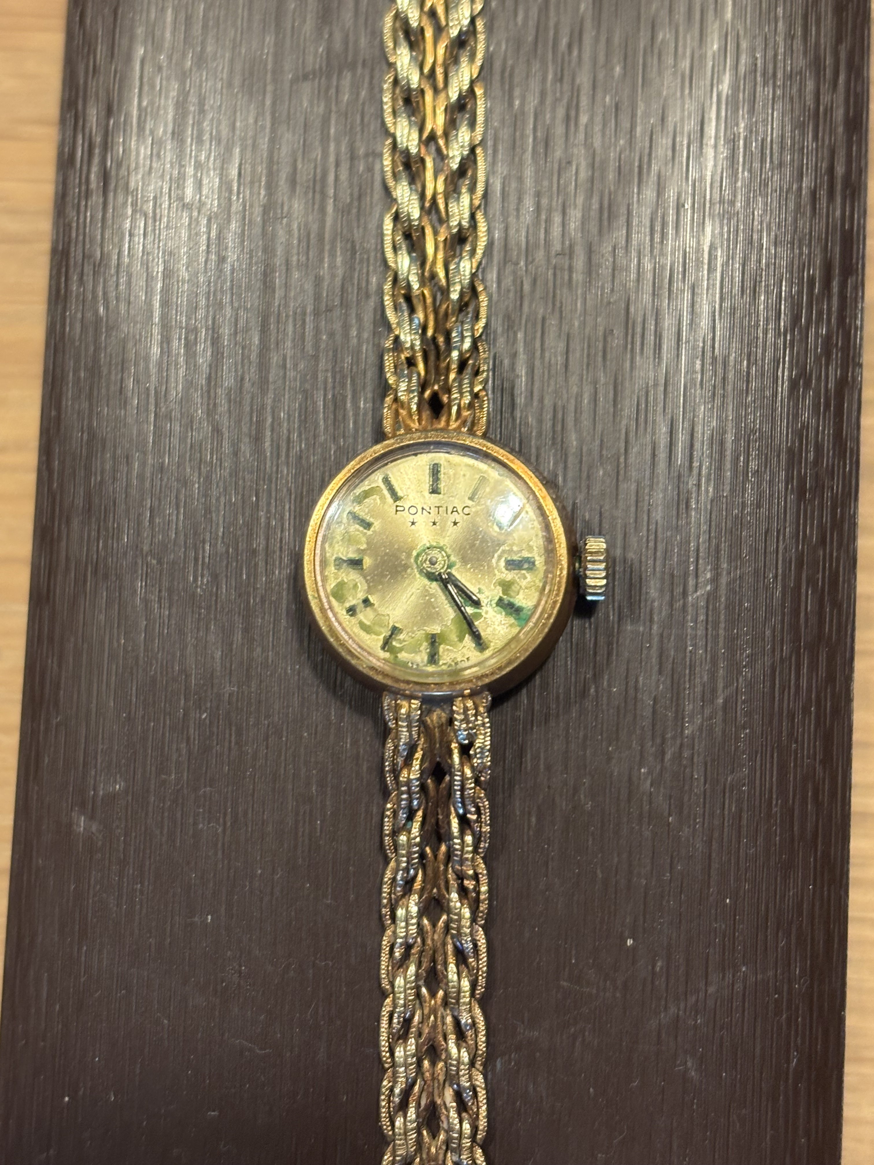 Waarschijnlijk een verguld horloge andrrs zou je een goudmerk moeten ontwaren in de kast. Nu zal er “plaque or” staan. Maar met vaste bracelet weet ik het niet zeker.