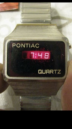 Leuk model Pontiac, met name bijzondere wijzers. Ik denk dat de kroon ooit vervangen is, want die is over het algemeen wat kleiner en vaak voorzien van een logo.