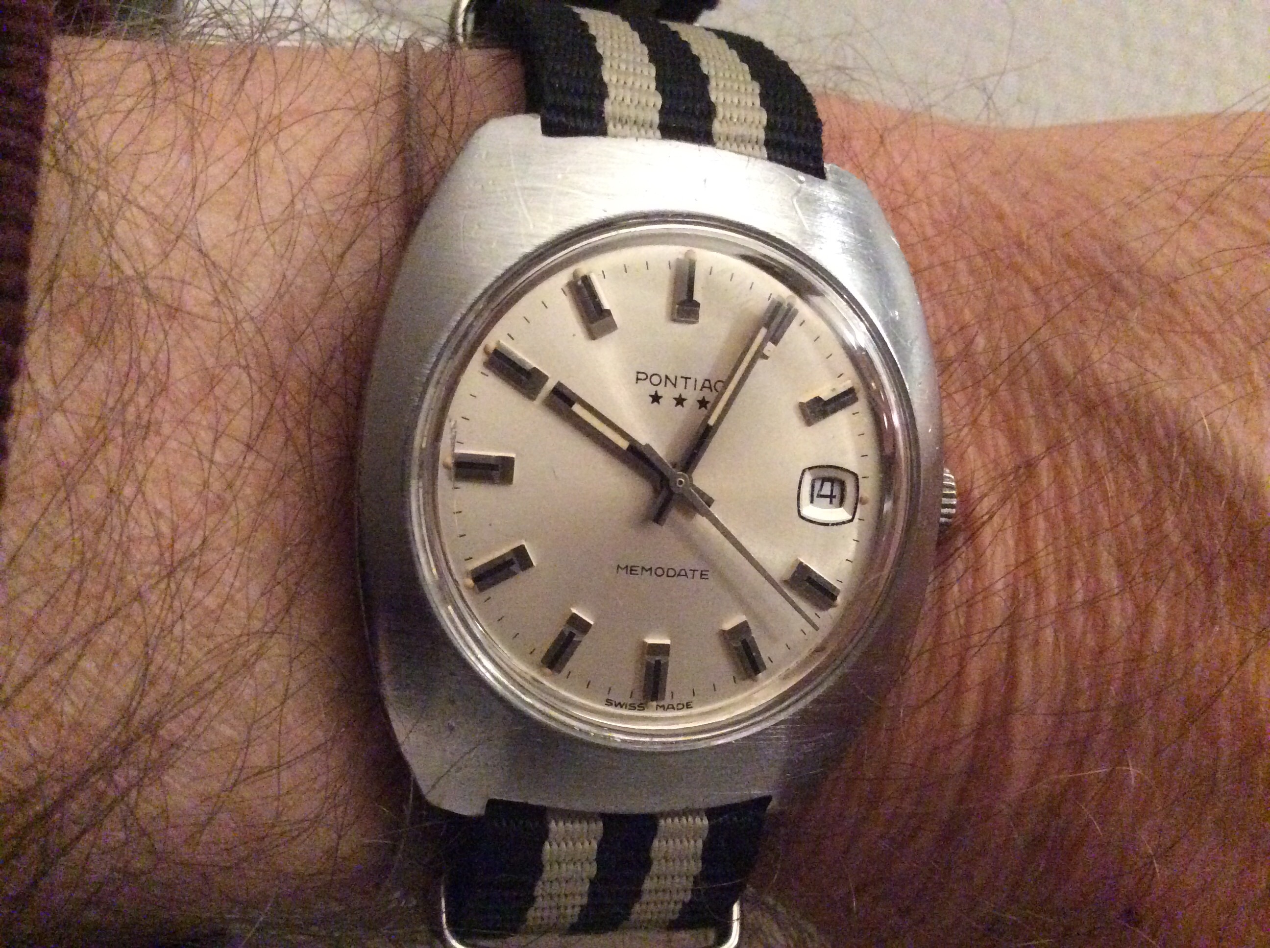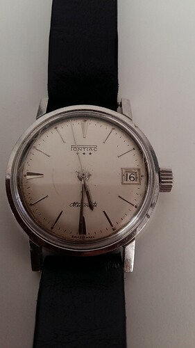 Ik denk het wel. Op de wijzerplaat staat dat het een Memodate betreft (geen memomatic), terwijl op de achterzijde automatic staat. De kast lijkt niet bij de Pontiac horen. Nog nooit zo’n kast met kroon bij een Pontiac gezien. Als @maurits hierover al niets kan vinden, dan is ie voor 99% niet origineel