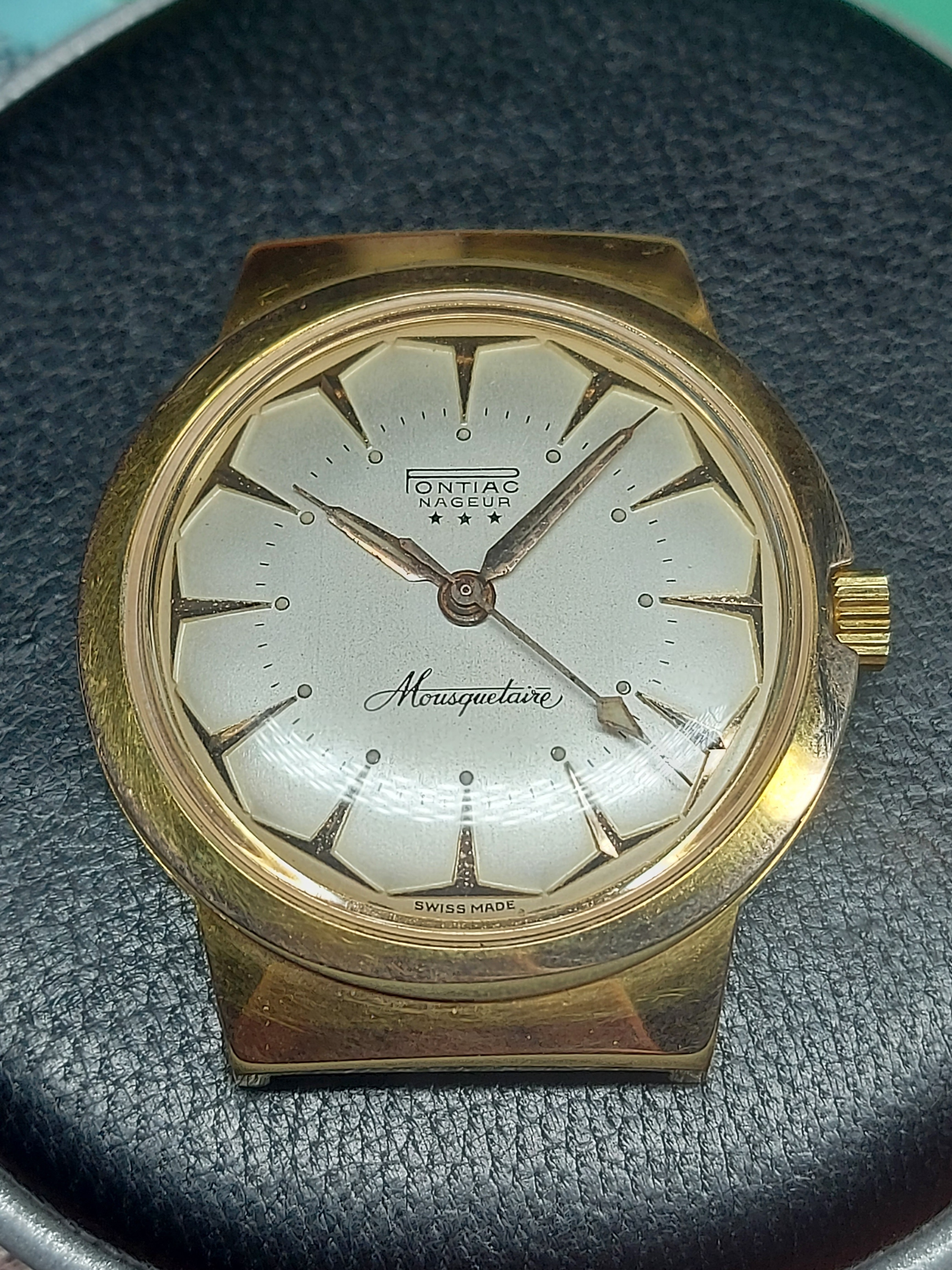 Zo heb ik ooit een Pontiac monorattrapante met een slechte kast en een incompleet uurwerk maar met een redelijke wijzerplaat gekocht, een tweede met een compleet uurwerk maar een slechte wijzerplaat en vorige week een NOS kast. Zodra ik weer in België ben gaat alles naar de horlogemaker en dan heb ik over een tijdje een complete echte Pontiac monorattrapante en nog een doos vol losse onderdelen waar ik misschien nog wat mee kan doen.