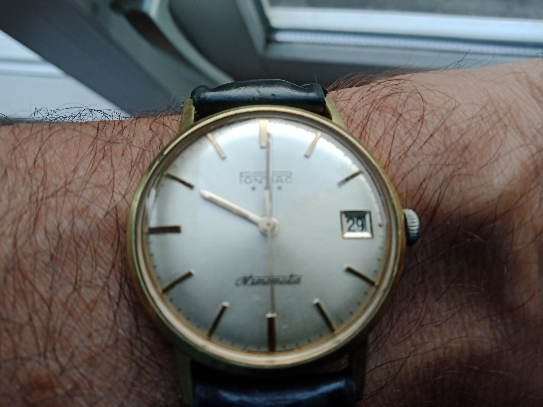 Helaas zijn ze nog niet draagbaar (zwaar vervuild , voor “een appel en een ei”, uit een oude schoenendoos gekocht); uurwerken lopen niet of slecht. Enkel wat schoon gemaakt tot nu toe. Toch wil ik deze gehavende horloges posten om hopelijk later met trots te kunnen zeggen dat ik ook een Pontiac drager ben :D!